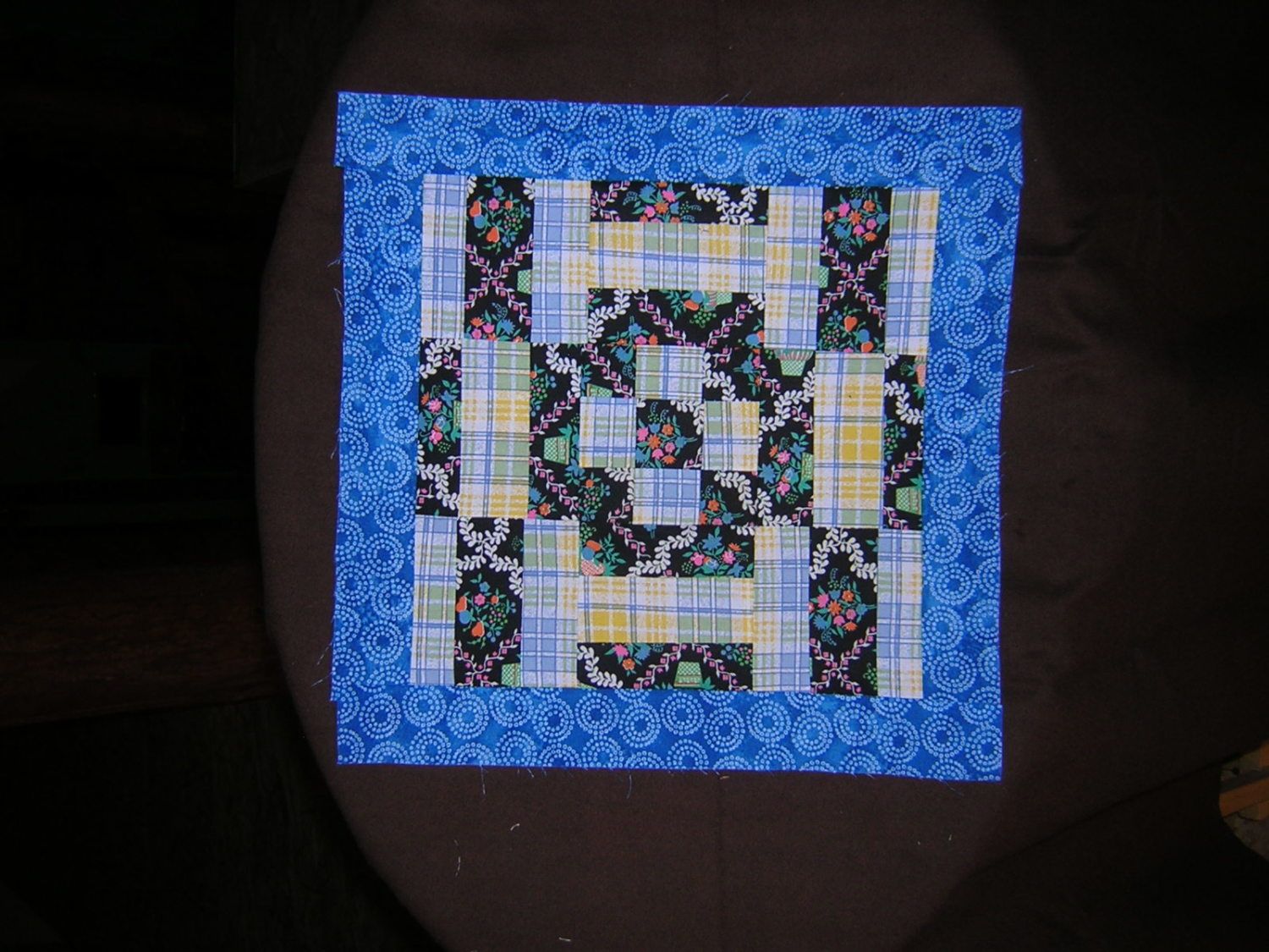 Disregard the blue border. That was a woops. Once I get more of this assembled, I'll post another picture. So far, so good. Laura gave me the best advice of all in this new passion. Keep your seams consistent and straight! The rest will come.....Thanks Laura. Very good advice indeed!