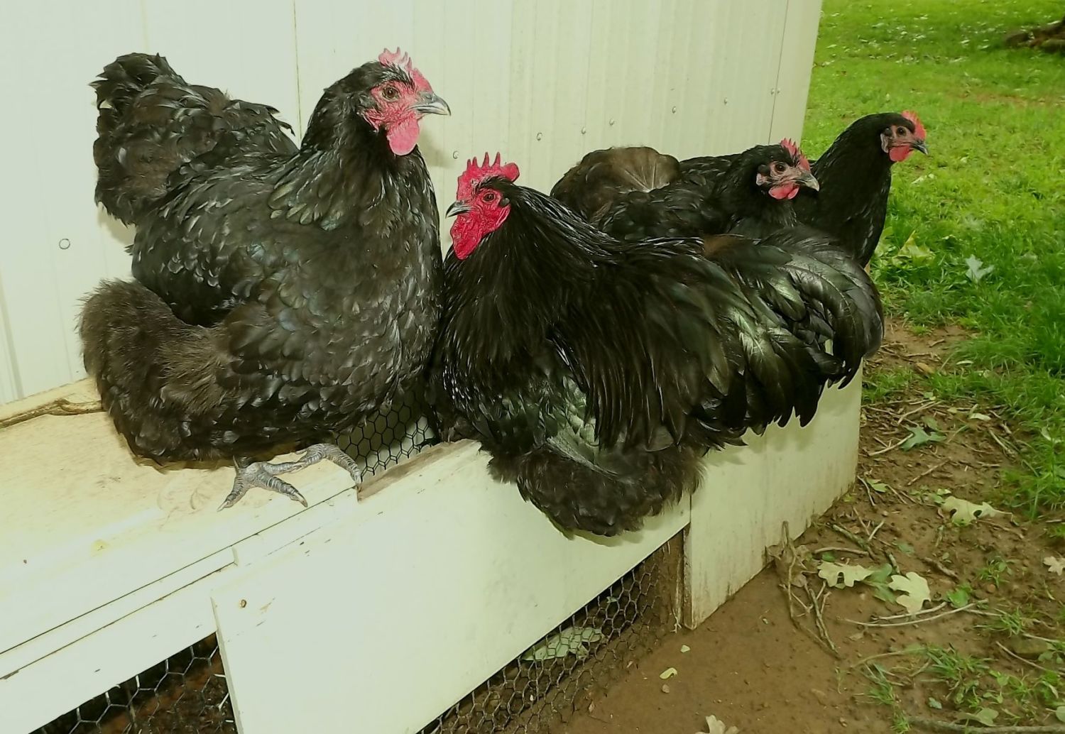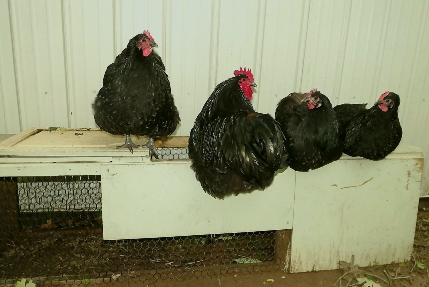 Soooooooooo, I'm outside cleaning up messes. I have my camera, and took a picture of some black Orps roosting up on an old tractor that is not in use.....