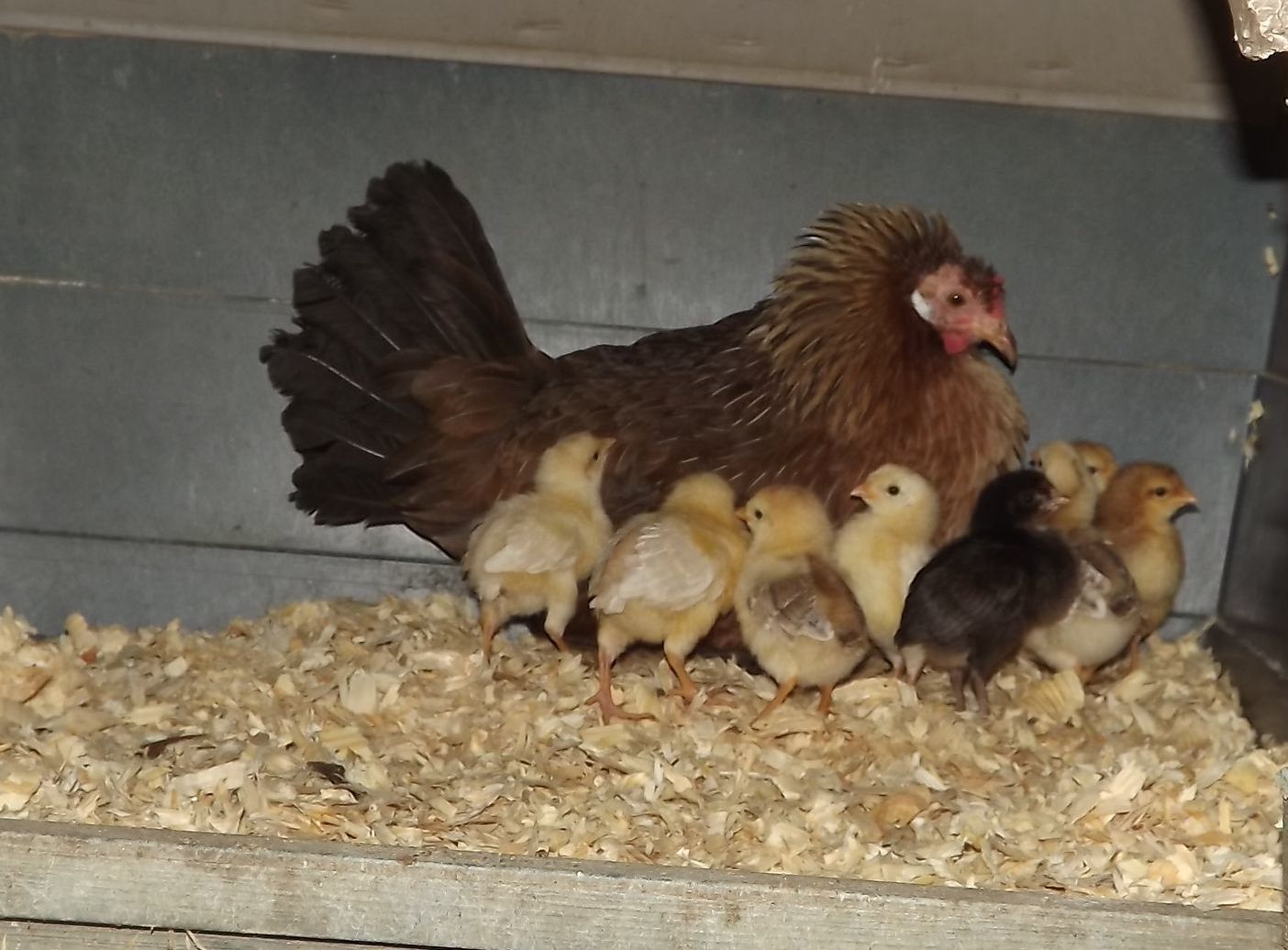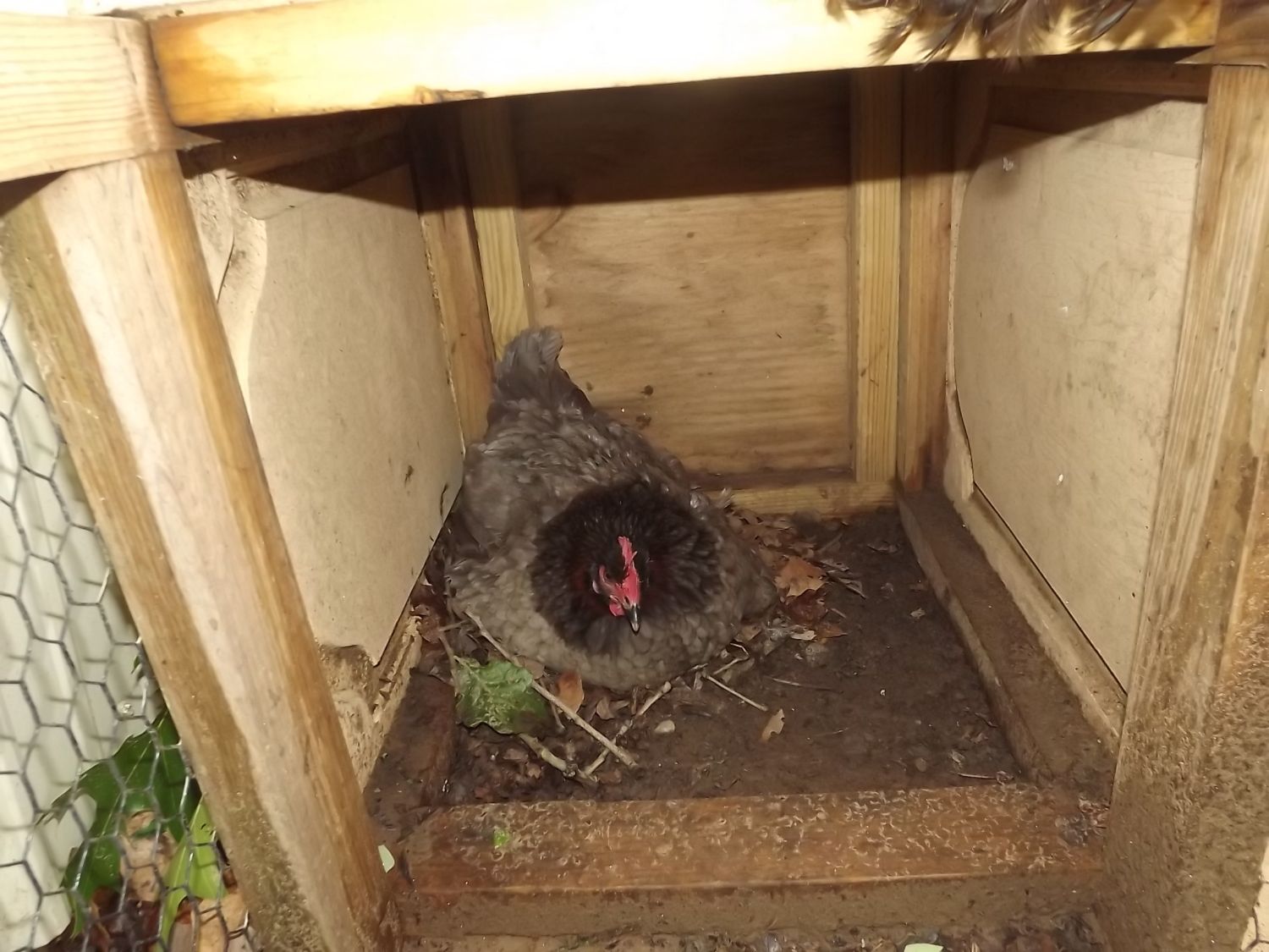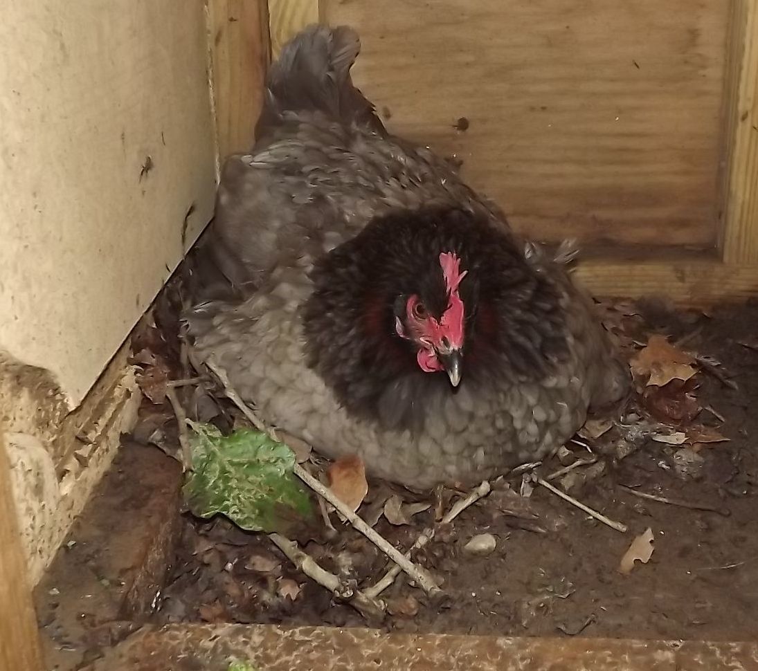 I had been wondering why I hadn't seen her (blue copper marans) up around the house (as she usually is). She is sitting on a dozen eggs.