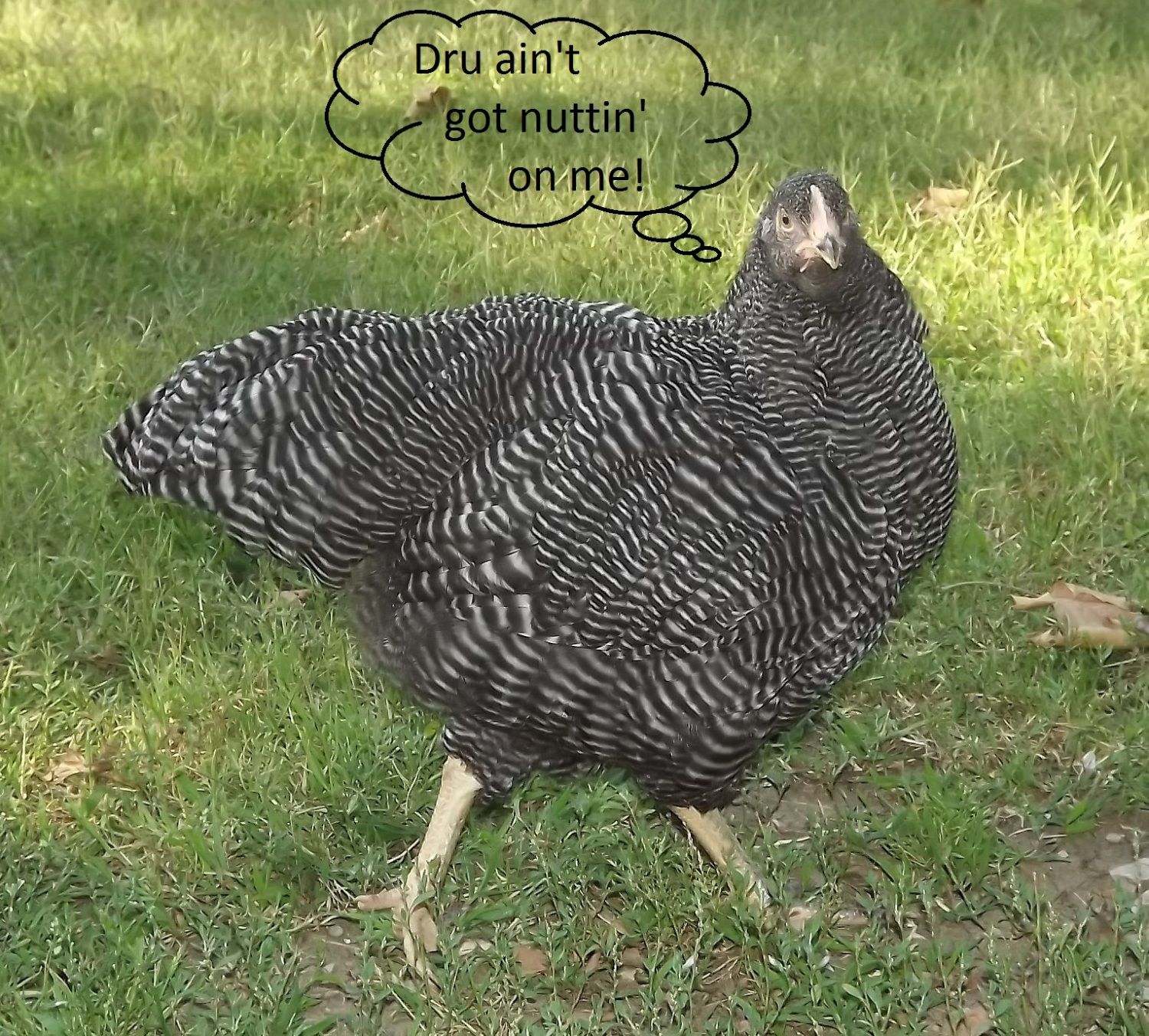 That is quite the picture!! What expression!I have a broody who refuses to give up. I put her in the 4x4 feed storage room (all alone), to break her.