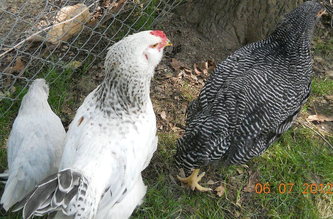 Ah, geez, I have TWO more broodies! Aimee, one of the D'Anver hens, is broody for the second time this year and DUSTY, the psycho chick killer, is also broody. She hasn't been broody in literally a couple of years now. The first time, she tried to kill the chicks at 3 weeks of age. The second time, she waited until they were 5 weeks old. Thankfully, both times I was standing right there to save them and throw her back in with Suede, but no way I want her to do this again. You just never know when she's going to go nuts on them!