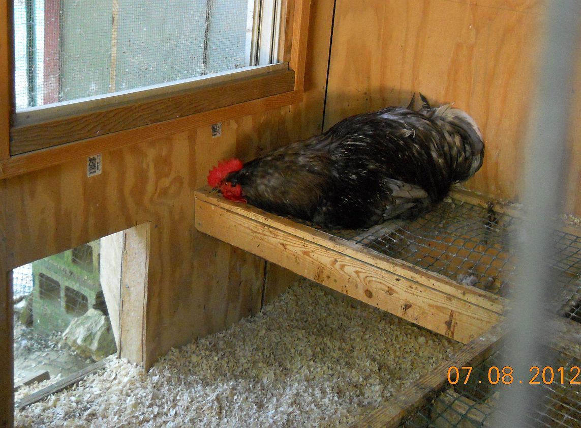 He is very tired every night. He also stands differently, not upright as much, more with his head hunched in and "squatty", especially toward the end of the day. His crow is so weak, too. He just seems exhausted, poor sweet old man. He's never gone to roost way before the hens until this past couple of weeks. It even started before the heatwave.