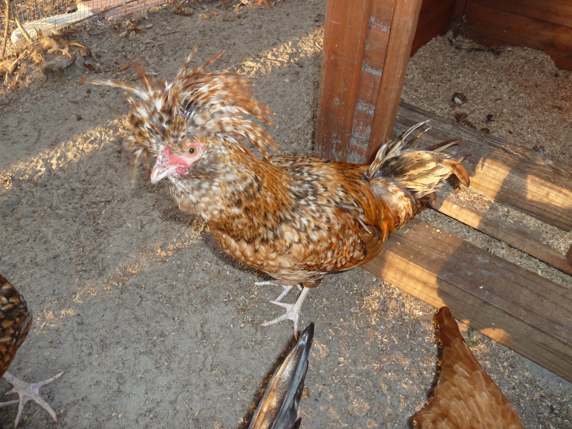 Moved Aimee, Carly and the five 5 week old chicks into the bantam coop today. Should be some nifty fireworks in there at roost time.