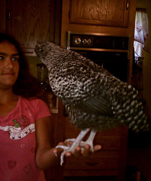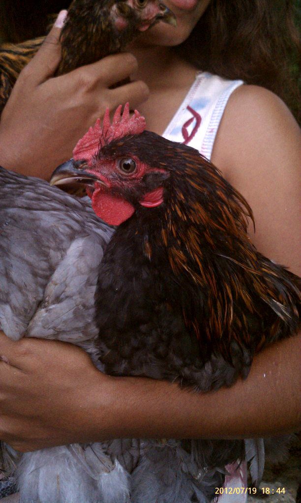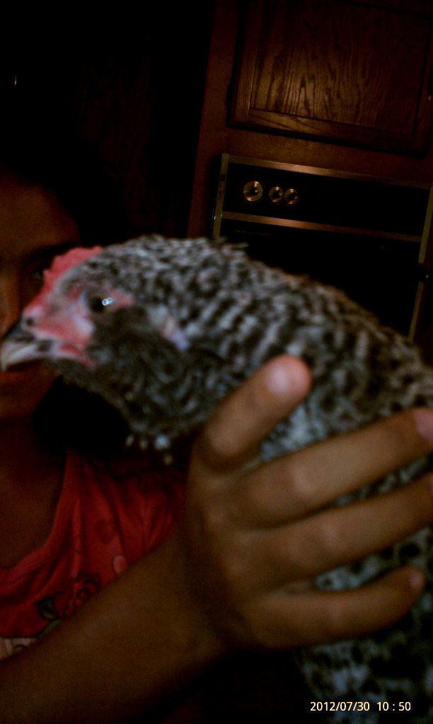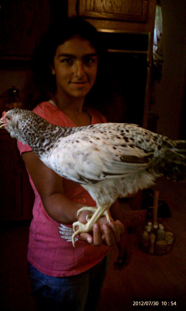 Half Brother to the Politician Chicken...this is Storm. Somehow, Isaac and Snow produced this baby. Ike of course is Dellie but Snow is a blue splash Ameraucana....