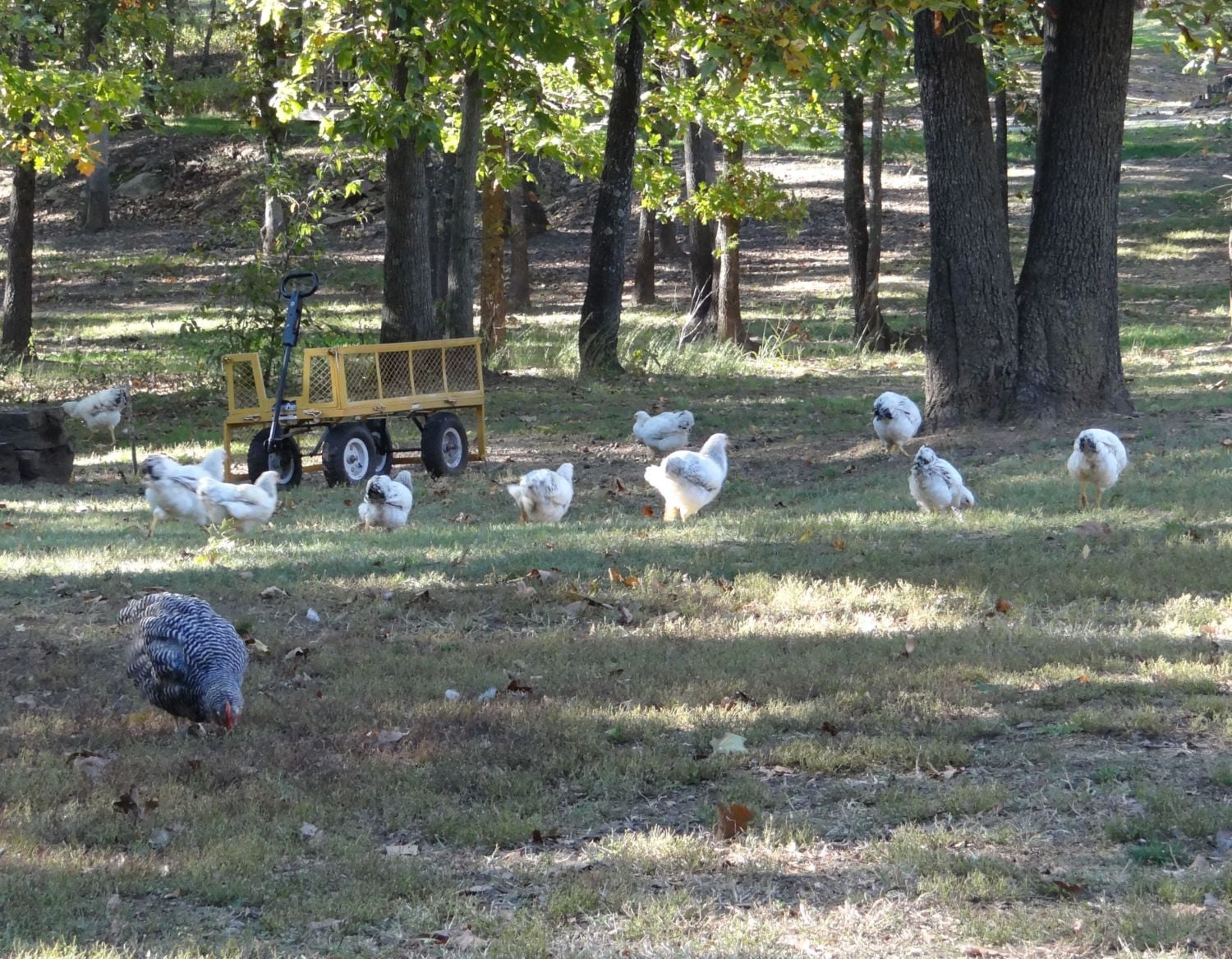 I do find that chickens pretty much stick with their own breed. Isn't that funny? I have hundreds of chickens running around out here, and most of them stick to their breed.