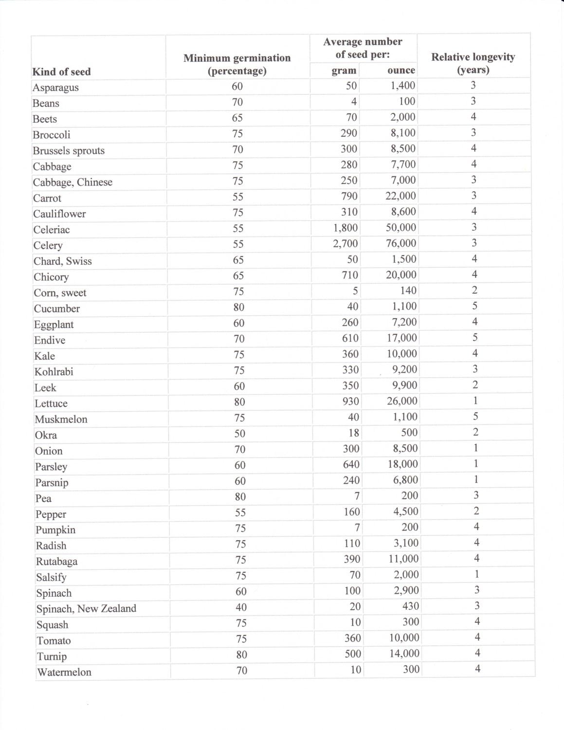 I know I live in a different part of the country but here is a chart I use for my Shelf Life and Storage of Seeds.
