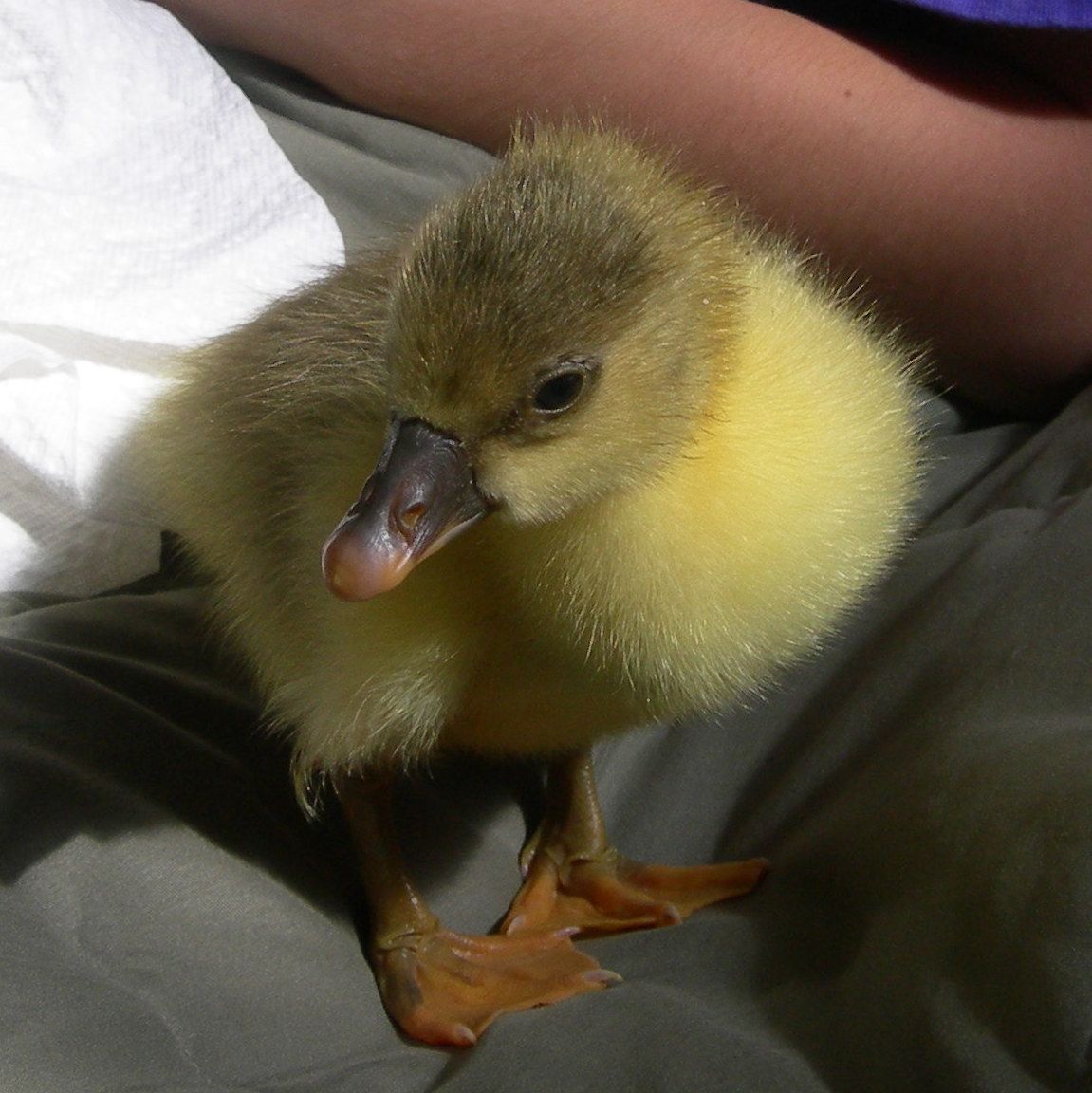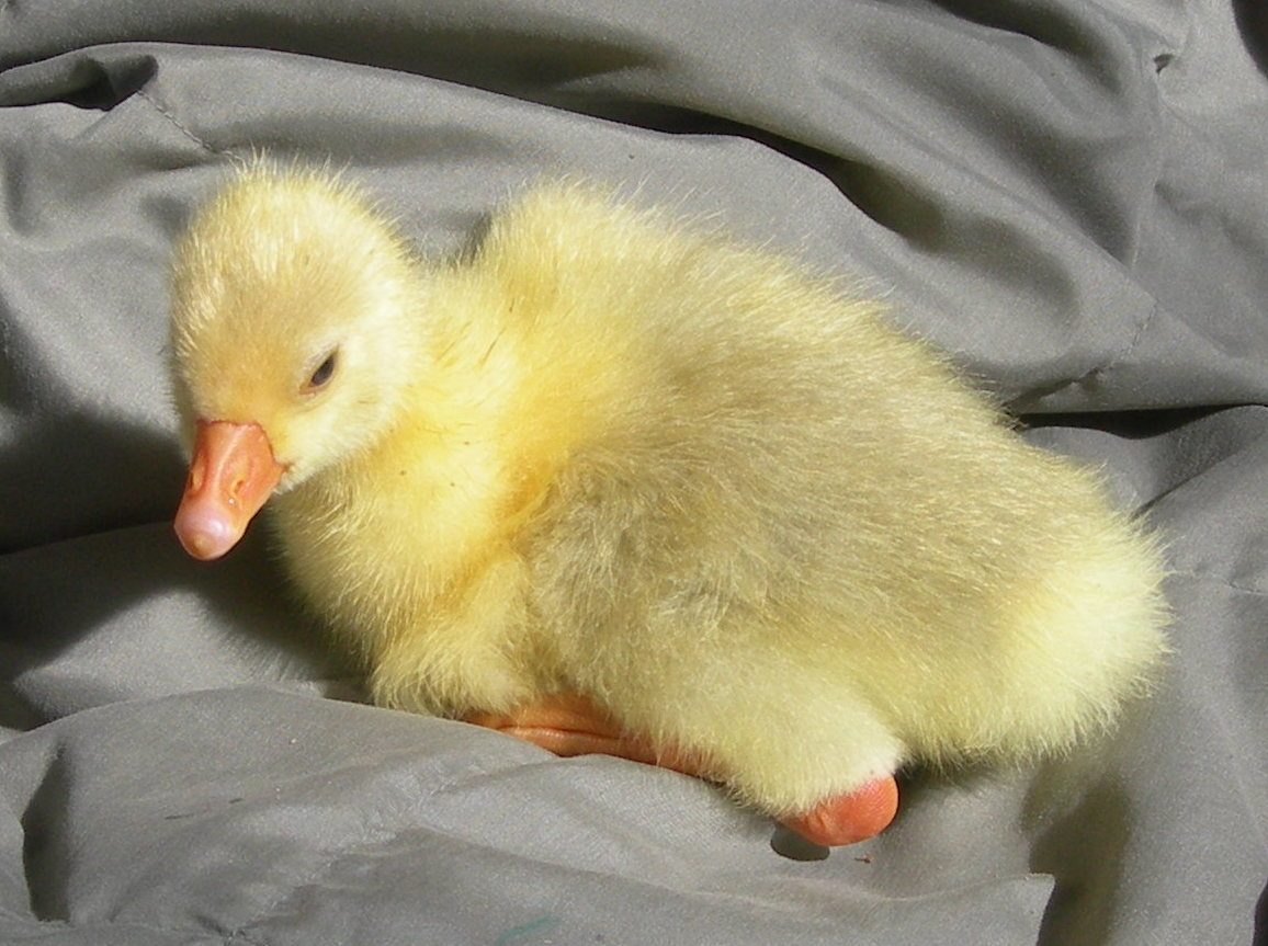 that little boy happens to be a grey saddleback Pomeranian. He now lives in Montana with 4 other goslings we shipped out with him.