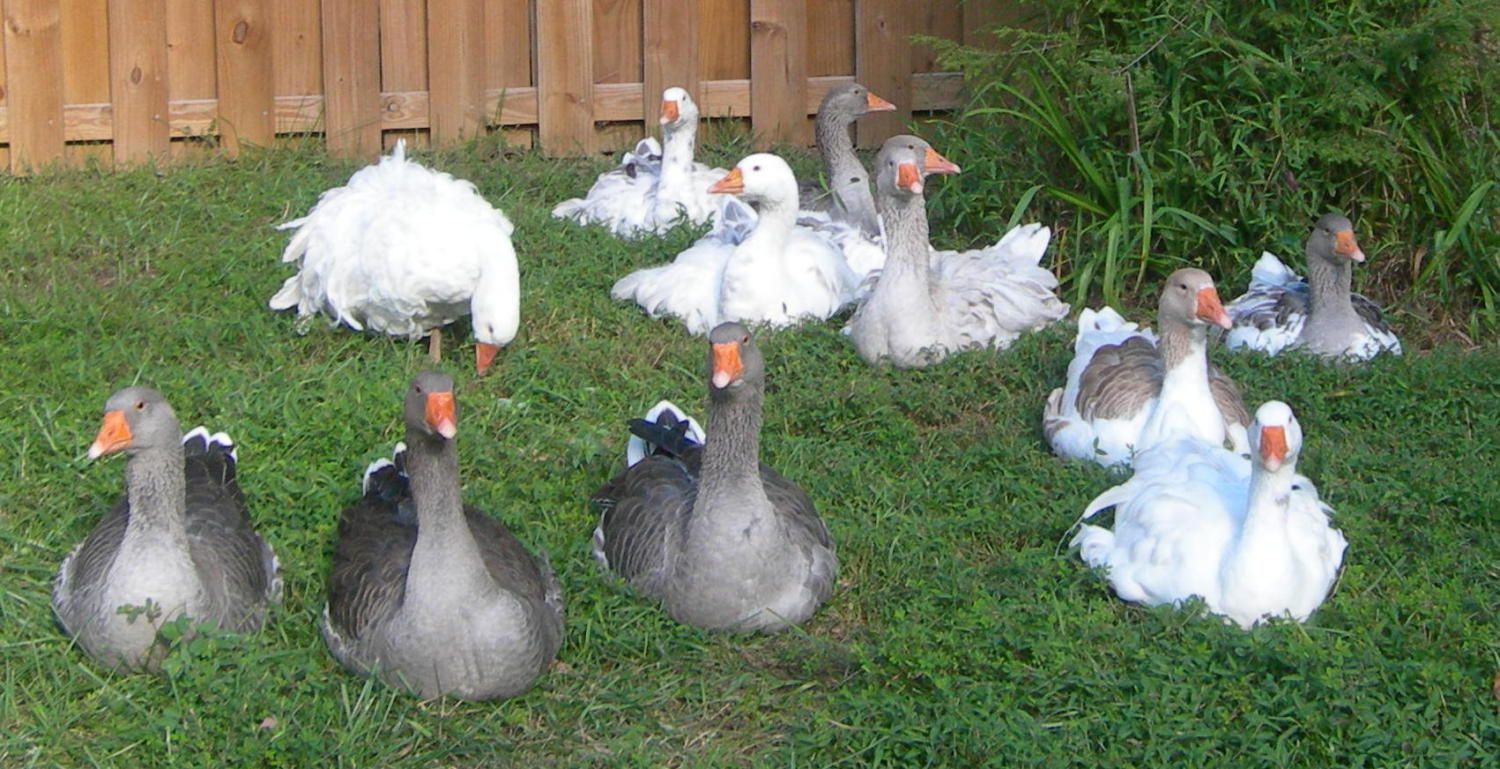 I dearly love my geese... They are soo smart... soo very smart... This morning.. I peered out the back door to observe a large gray squirrel... My Sebbies were out back watching him too.. lol They saw me and proceeded to make their way toward me... as far as their fenced area would allow.... I called out .. Good Morning Rosey..... and I got a welcoming honk from her...I called her name again.... she honked again... She knows her name :) Soo sweet. :)