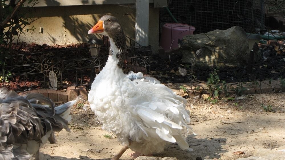 I had two saddleback females and 2 splash ganders from that hatch Ginger came from. They all were curly breasted from that hatch. The only saddleback I had at the time was Lance a smooth breasted gander and two females from Vicky who carried saddleback. No other SB at the time.