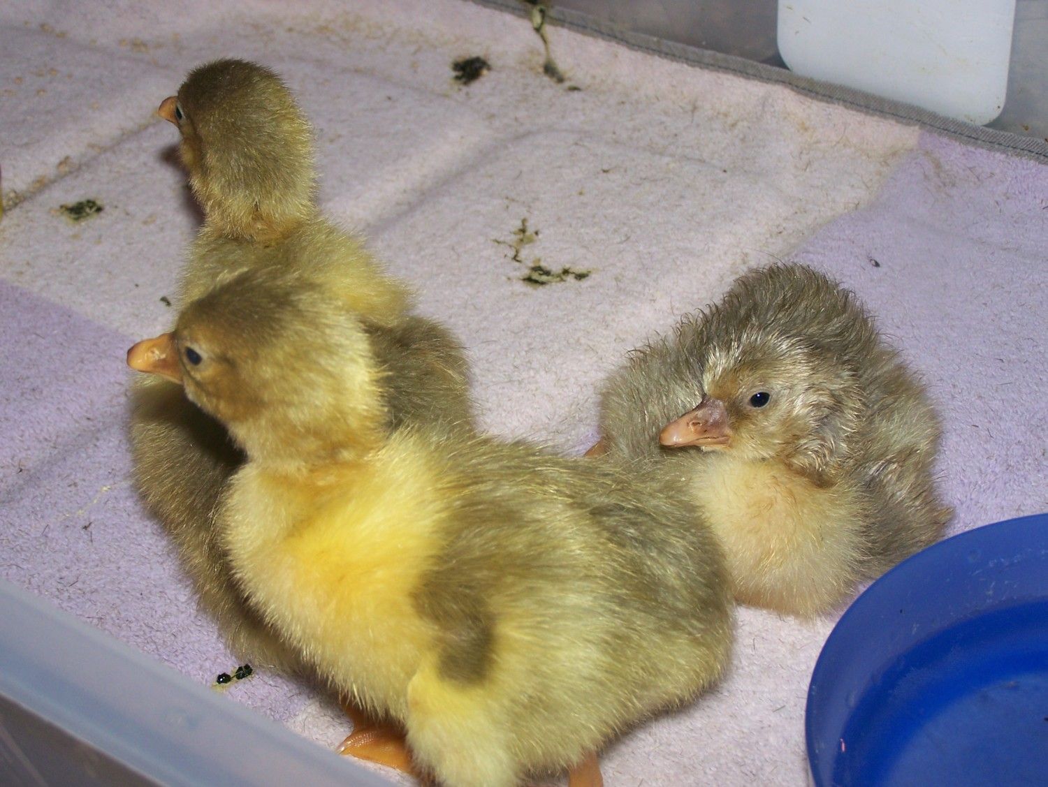 These are my new babies! The two on the left are half seb and 1/4 african, 1/4 toulouse! I am hoping for curly gray geese!