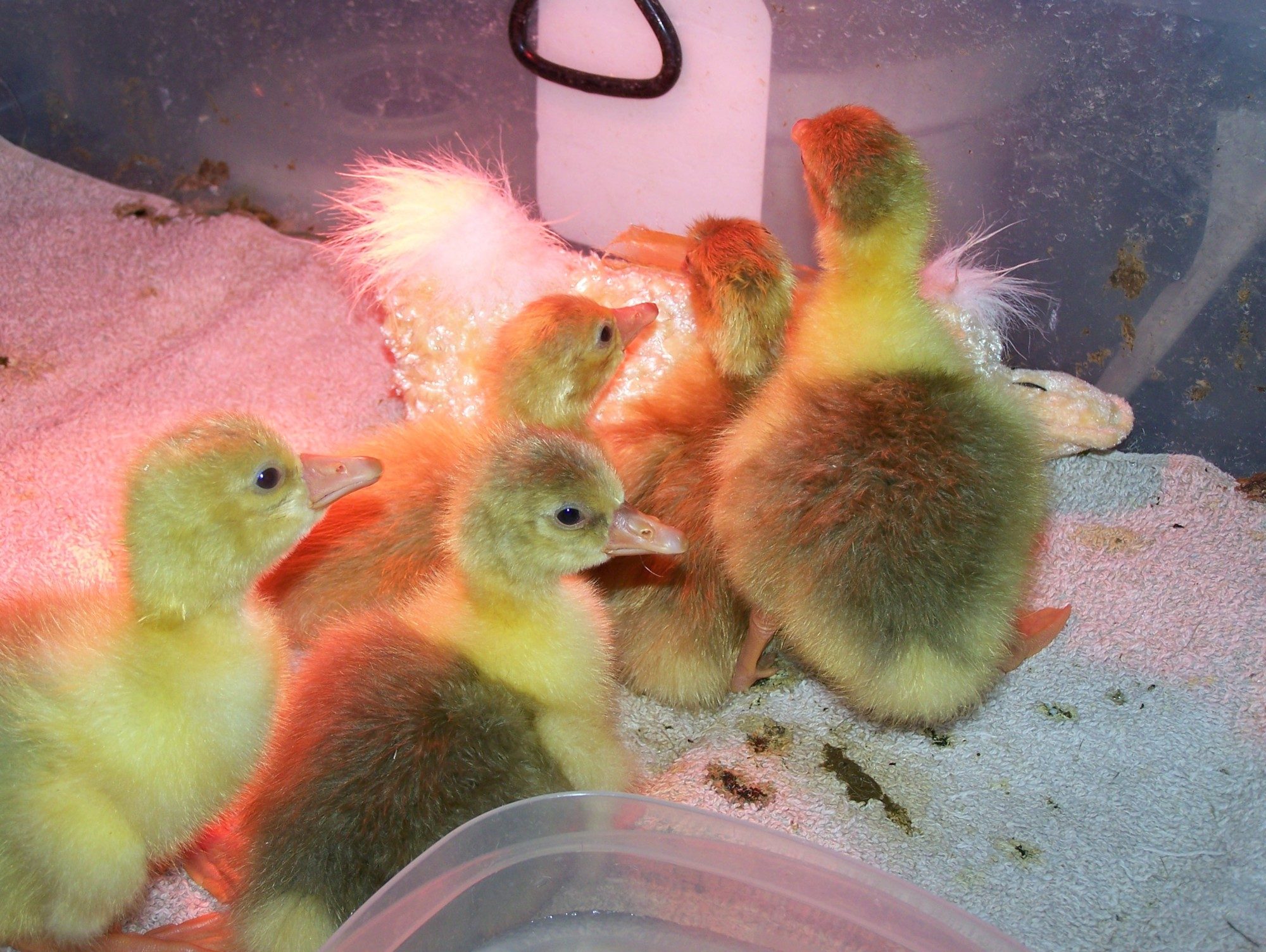 Funny story, I am sitting here on the computer and we hear this little call-- "woo" from one of the goslings. Me and my son at the same time, answer back "wooo"! LOL You know you raise birds when everyone in the house answers them back!!