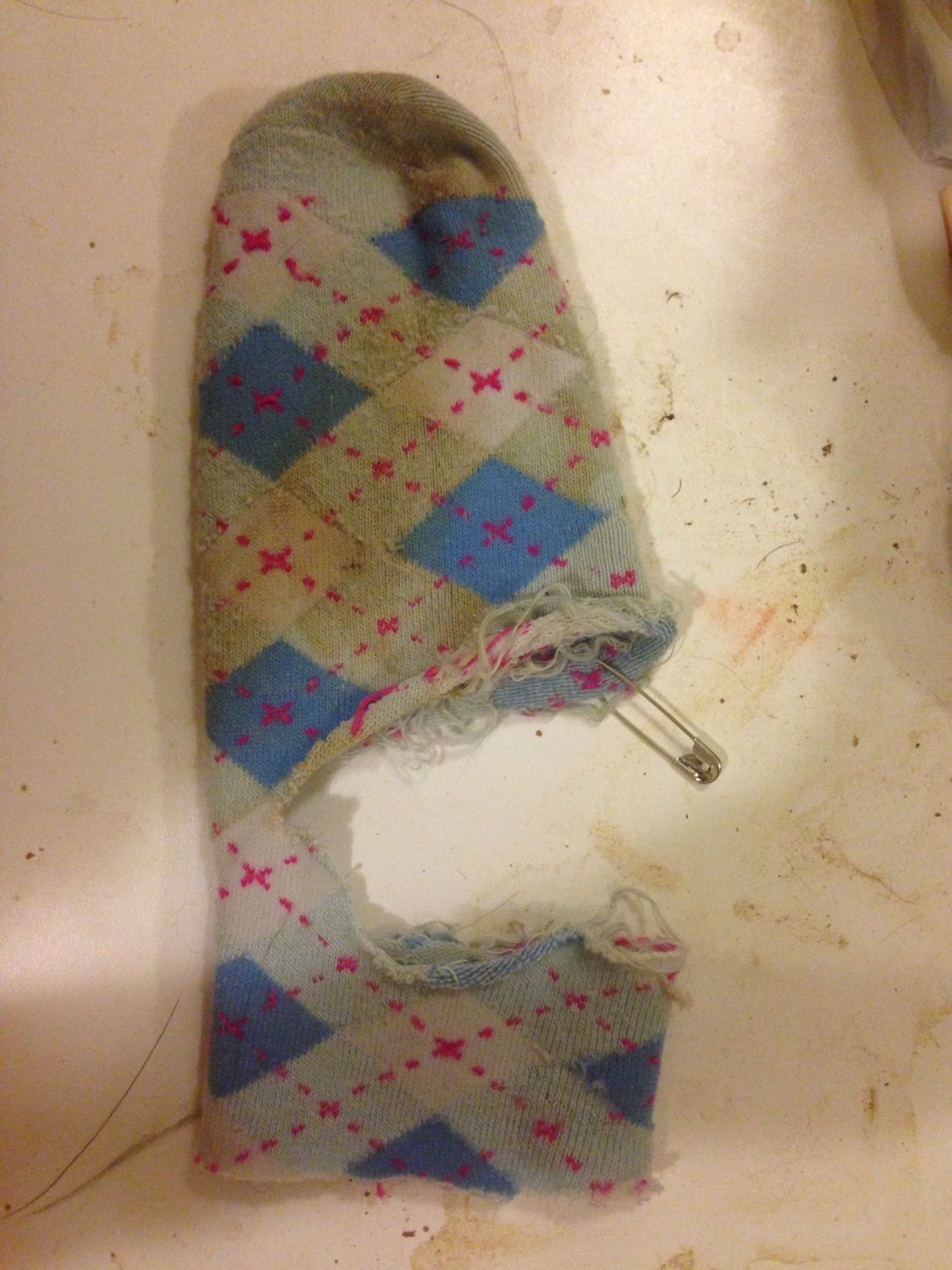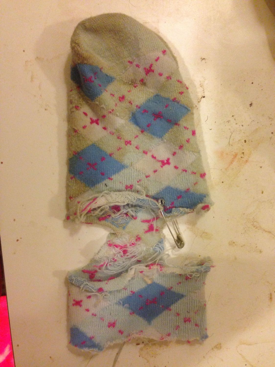 *please ignore the messy counter top!! It's a garage counter*Really neat idea. what will they be in next? they grow so fast.Thank you!! They are actually made of old socks. I cut a big circle in them to have room for the legs and wings to move freely, I left a thick line that rest from the chest and belly and connects to the end of the sock, then slip the top of the sock over the head. I use toilet paper and pads as a lining in the foot of the socksometimes I'll do a big safety pen connecting the neck to the back so it doesn't slip. I have attached photo of a side view and a photo of the way it sits on the goose