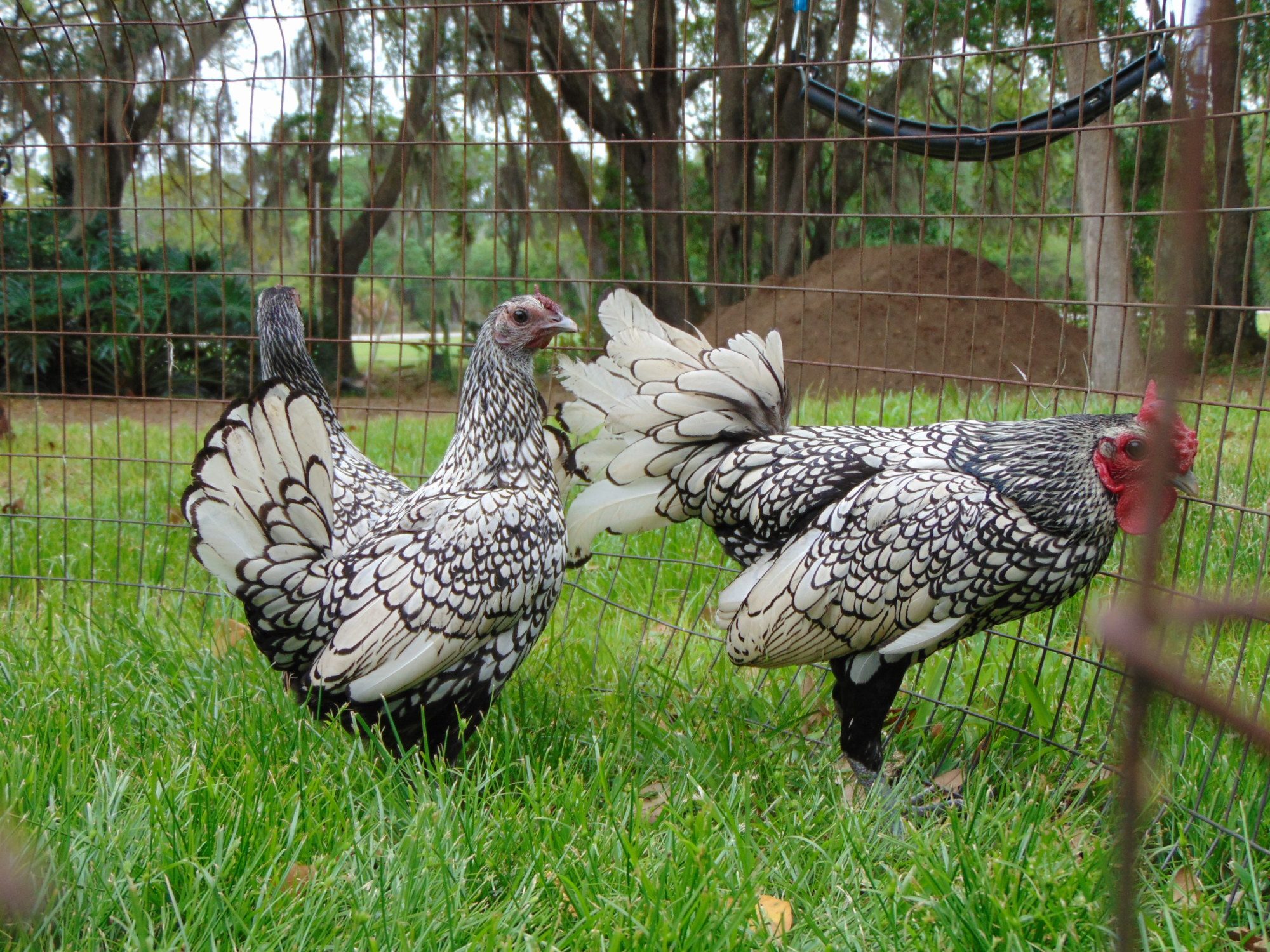 so i thought i'd say for those of you who are new to sebrights, and might be worried about their so called lack of broodiness, i have had two sebrights. one set her own nest and hatched out ten out of eleven eggs. and my other sebright went broody on a single golf ball and then excepted two eggs that were not her own. both hatched but only one survived through no fault of hers. it was born weak. the other chick is the smartest and heatiest chick i've ever seen. so i have had no problems with sebrights going broody. so those of you who are new to sebrights don't believe the internet. my sebrights bring me nothing but joy. they are even decent layers.