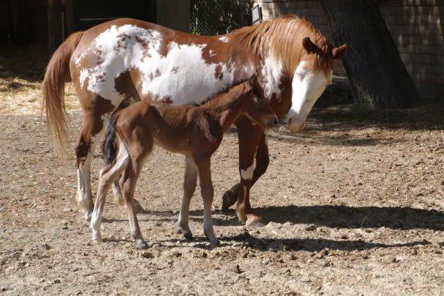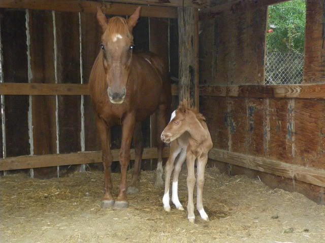 We call him The Copper Cobra...Cobra for short. He will be 2 in Oct. Funny thing about the whole ordeal...She colicked in Aug that year & 2 different vets both had their arms inside her up to their shoulder & neither felt the baby (who would have been 9 months gestating already). When I bought Brandi in Apr, I didn't know she was preggars. I had 2 other mares foal that year which brought my horse total up to SEVEN!!! All the babies were boys! I kept the colt in the 1st pic below & now he has turned into a beautiful black stallion!