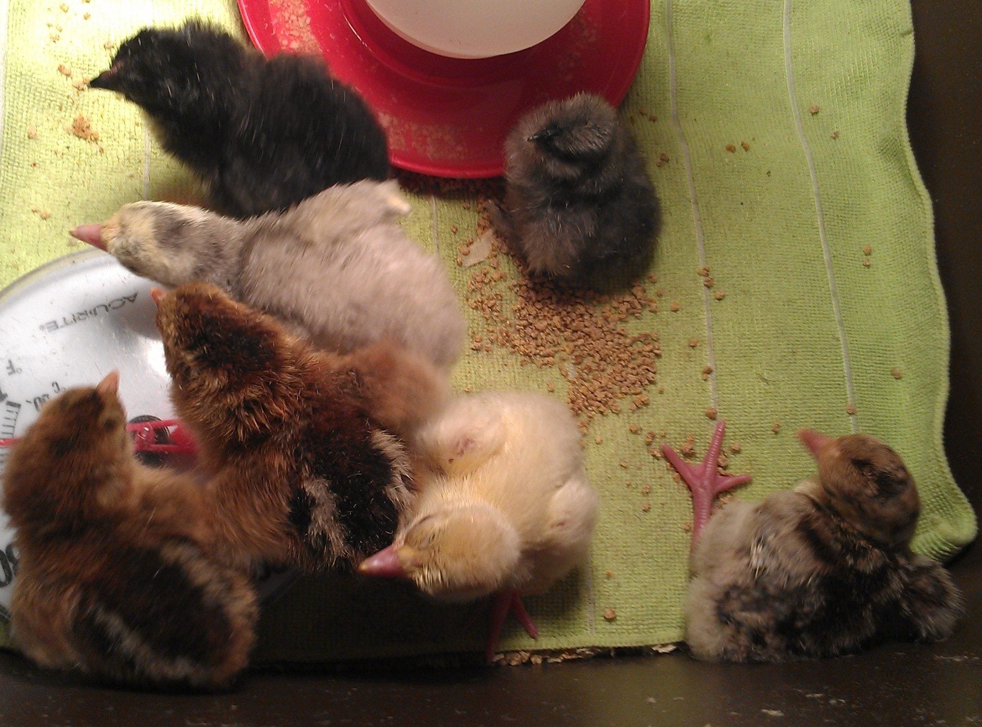 Because the turner is still working, each chick just fell out when I lifted the lid, because the Brinsea was at its lowest swing in the cycle. Little fuzz butts been going for a nice gentle ride, back and forth....