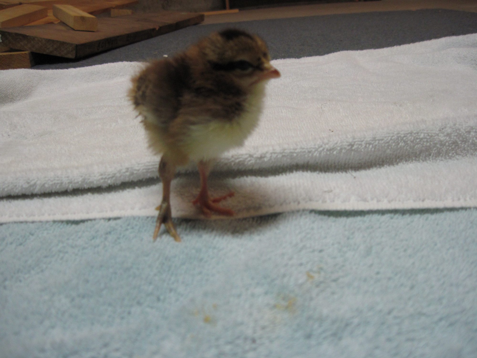 By the way, the game birds I hatched are the oddest chicks I've ever raised. They're only a few days old and yet they are insanely good at avoiding capture. I don't like being outwitted by a chick. It took me about 2 minutes to catch a poopybutt chick. I was about to have to call in reinforcements (BF). I think I'll need to handle them more than usual to get something a bit more closer to tame when they get older.