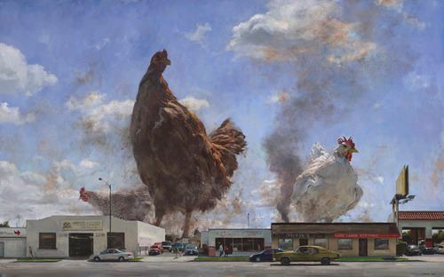 . Rampaging Godzilla-Chickens! Perfect.It made my morning.