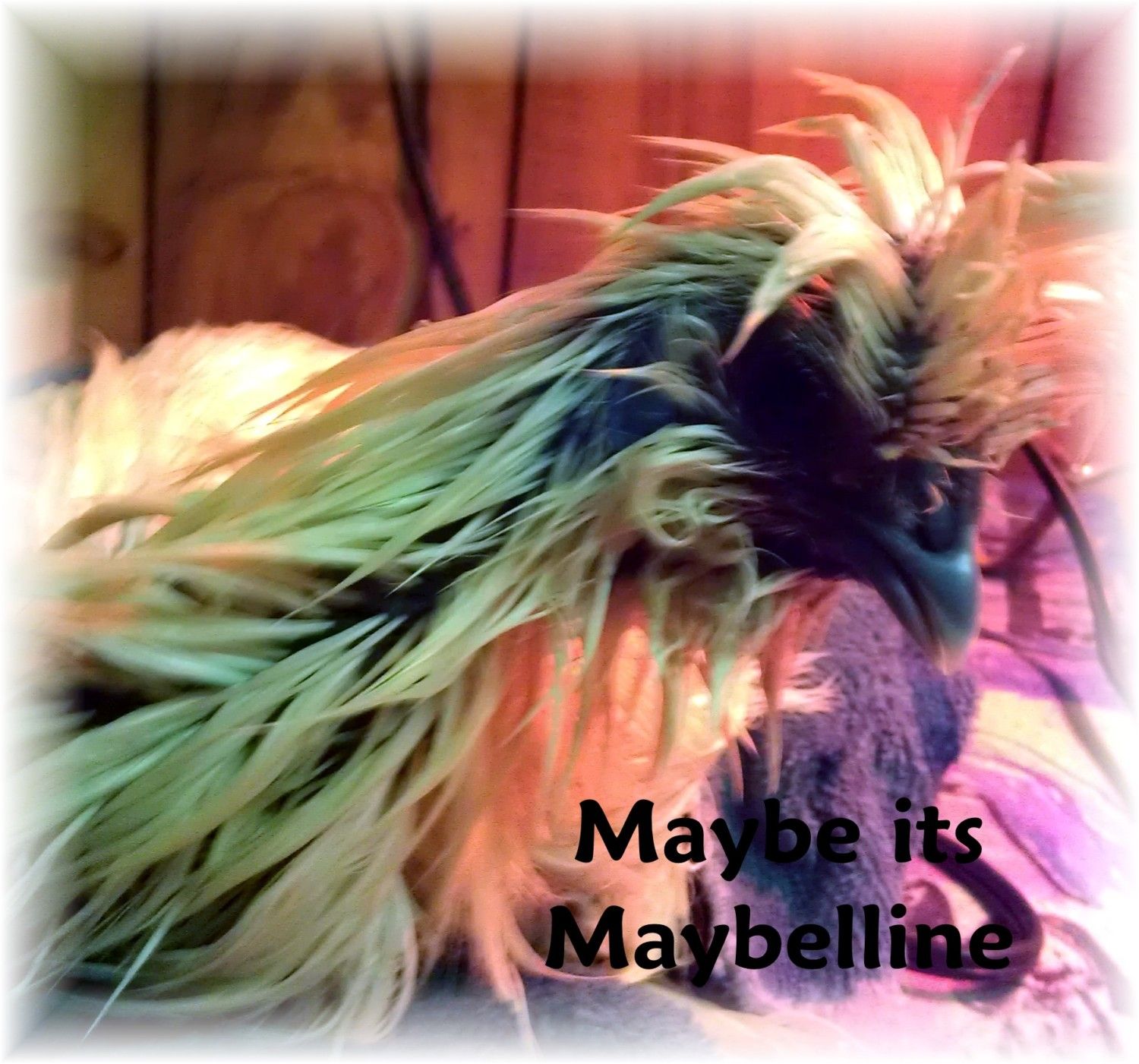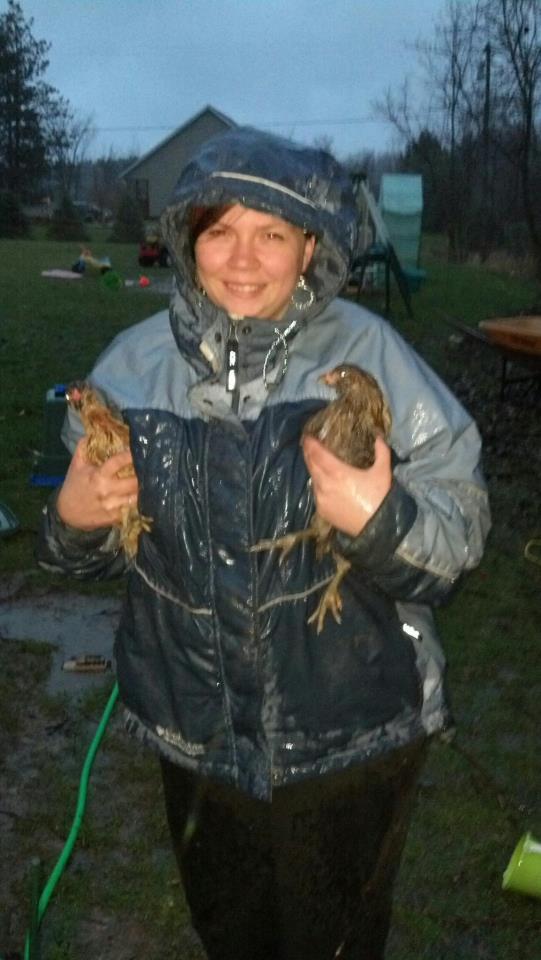 Ok, well, it's late because I keep forgetting to save it to my computer so I can add it, but here's "The Supreme's" my two EE pullets (one we also call Hawkey because she looks like a hawk) ...they escaped the pen, and this was after catching them out in the rain to return them to the coop.