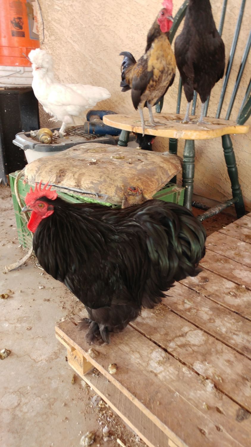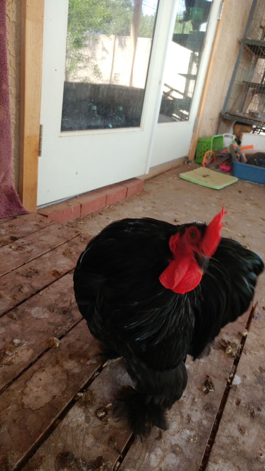 your black too is pretty. I had a black roo named Blackberry, we had to give him away too. He was very sweet but would mount your hand. He looked amazing too, more heart-shaped than ball-shaped. But I didn't keep him because all of his chicks would be black.