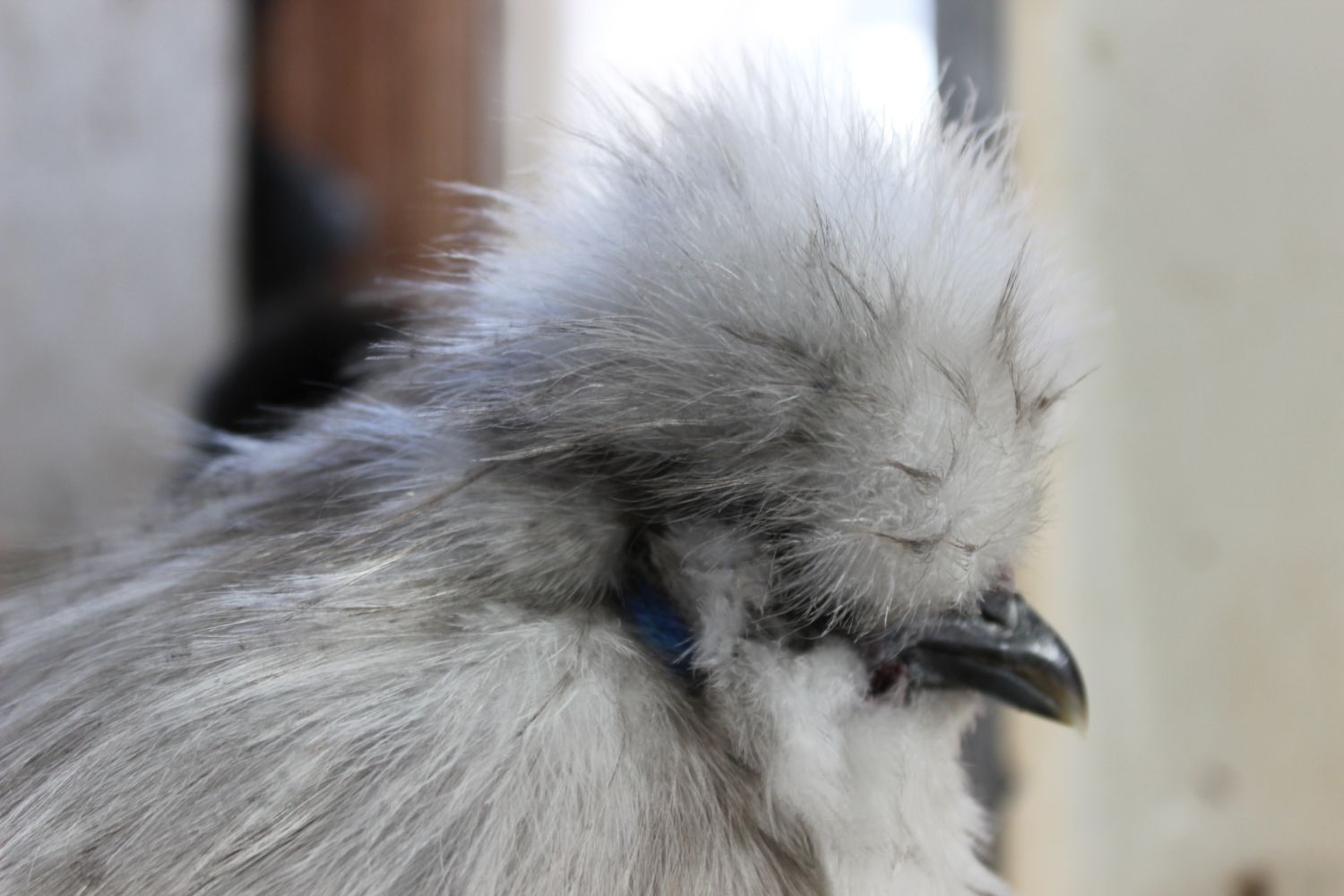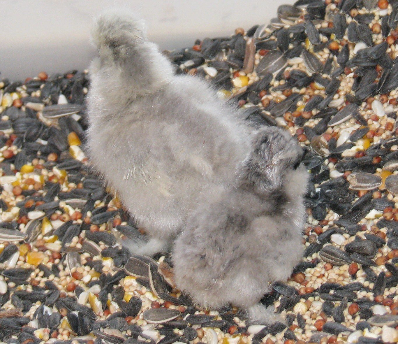 I sure love your boy! I need to get my self-blue pair out a get some new photos. Here's another picture of my itty bitty chick. It's nine days old now. About 2 days in this photo. I have it in with the newly hatched babies now that are a week younger and it is smaller than they are. I will be very surprised if it lives but so far it's doing fine.