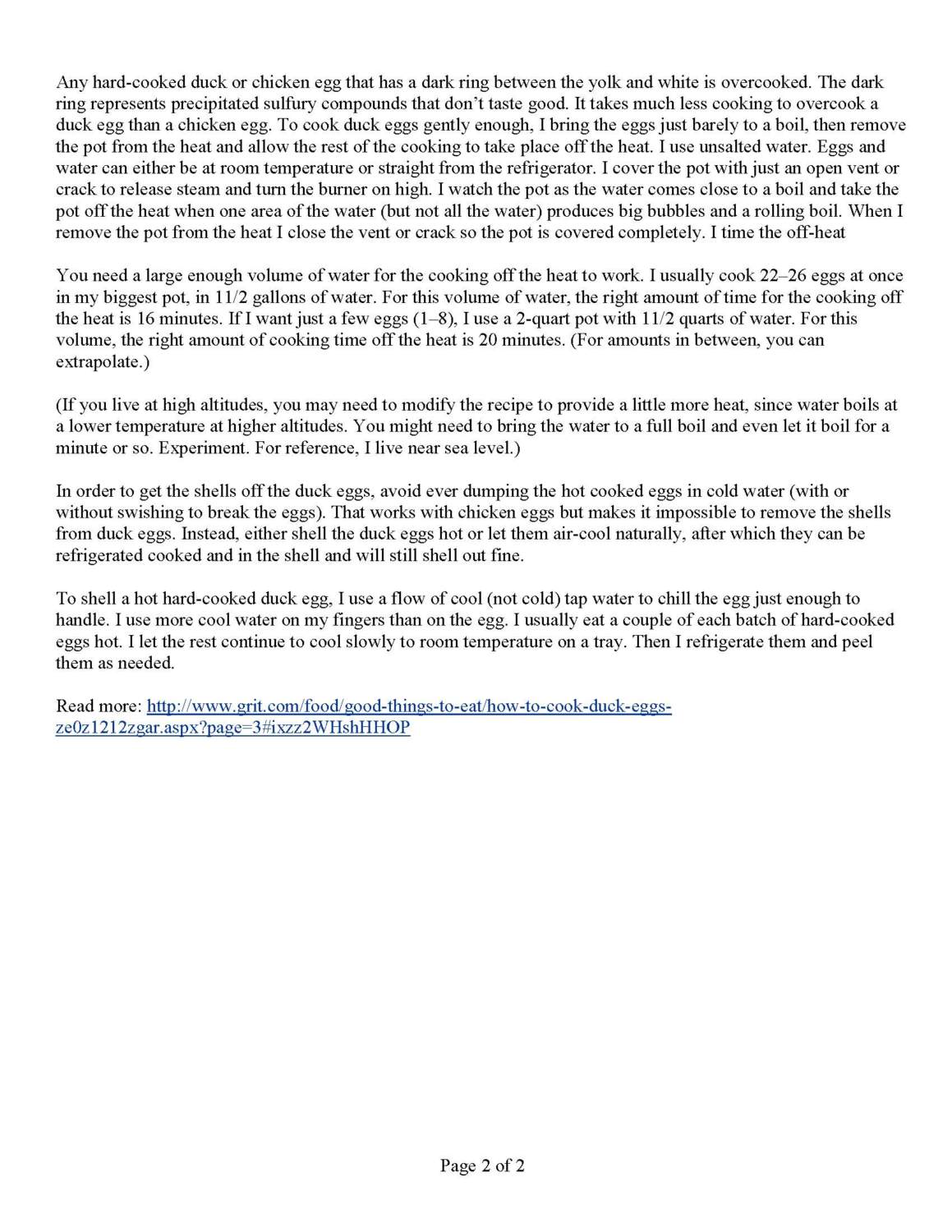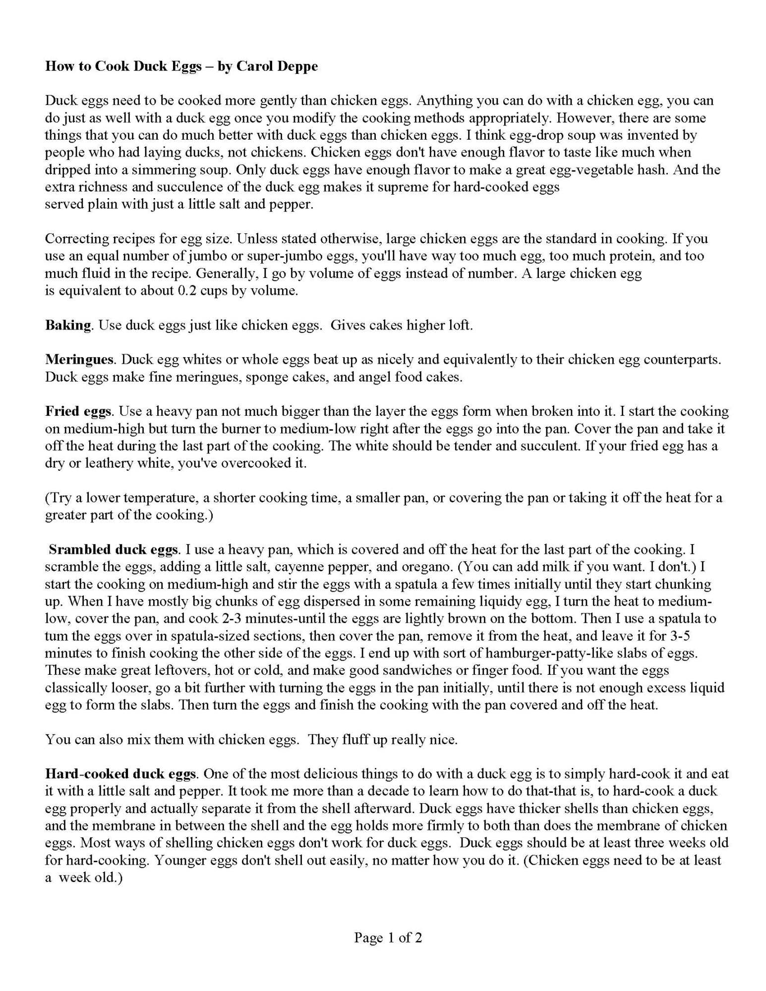 Thank you for sending the article about cooking and baking with duck eggs. It was very helpful.