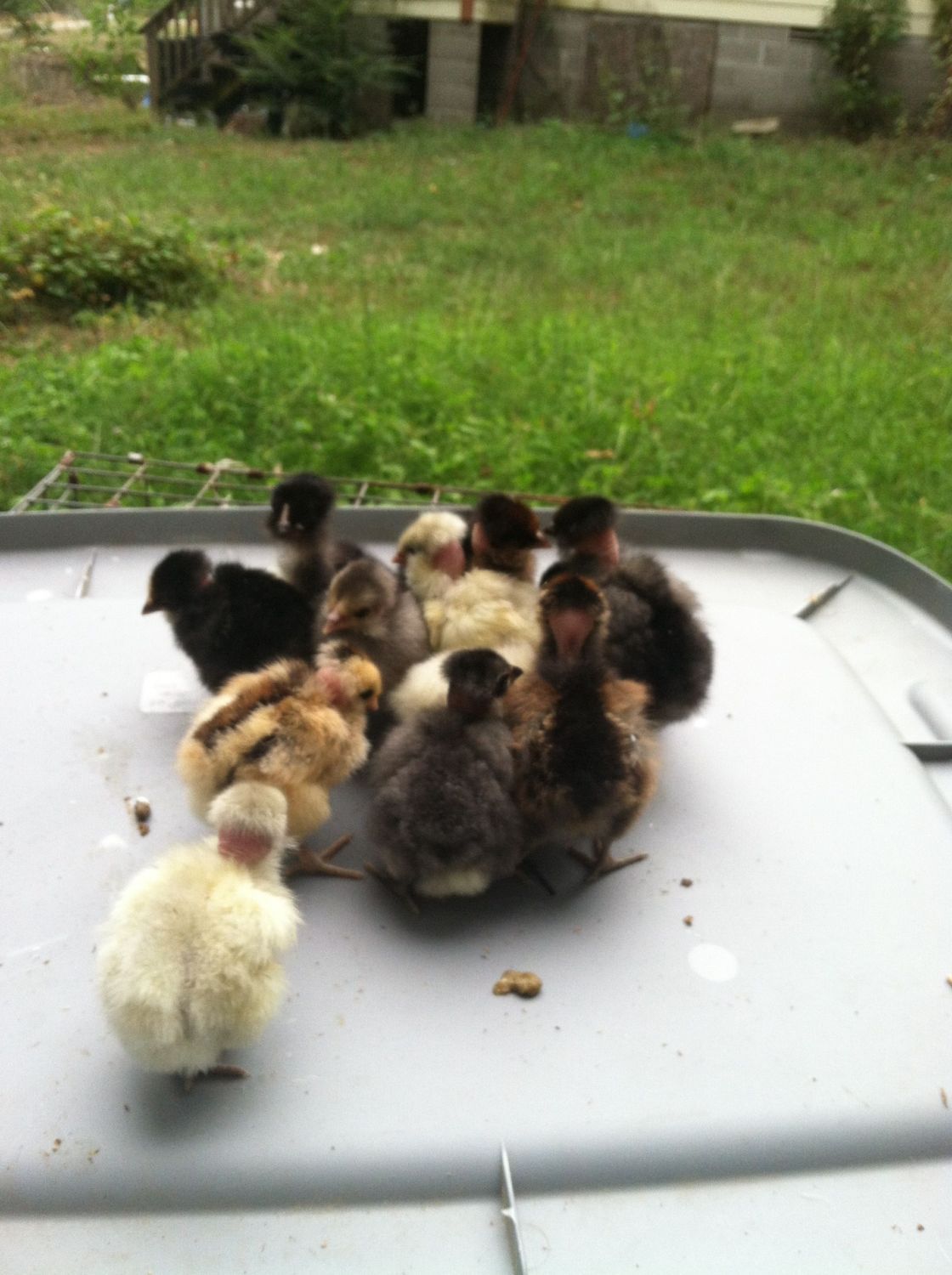 Here are 12 of the Naked Neck babies that hatched for me on the 17th and 18th if this month.