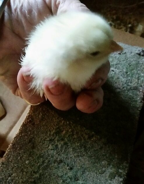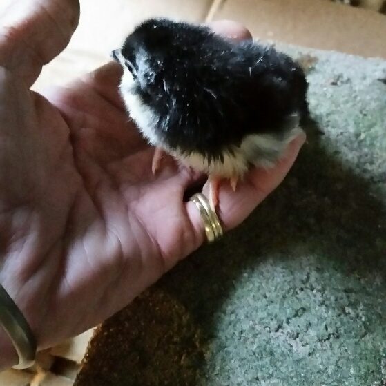 So cuteAs of 8 or 9 a.m. I saw 5 little cuties: one white leghorn, one silkie and 3 Henrietta X Creamy Roo. Those are 1) black body with white butt 2) black and white speckled, 3) majority black with 1/3 white.