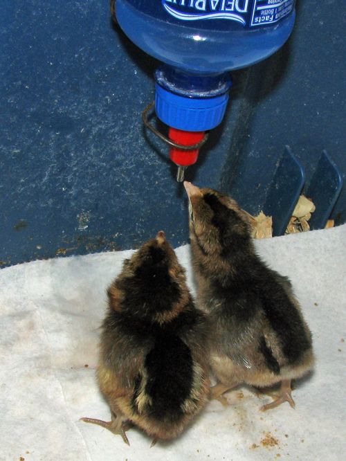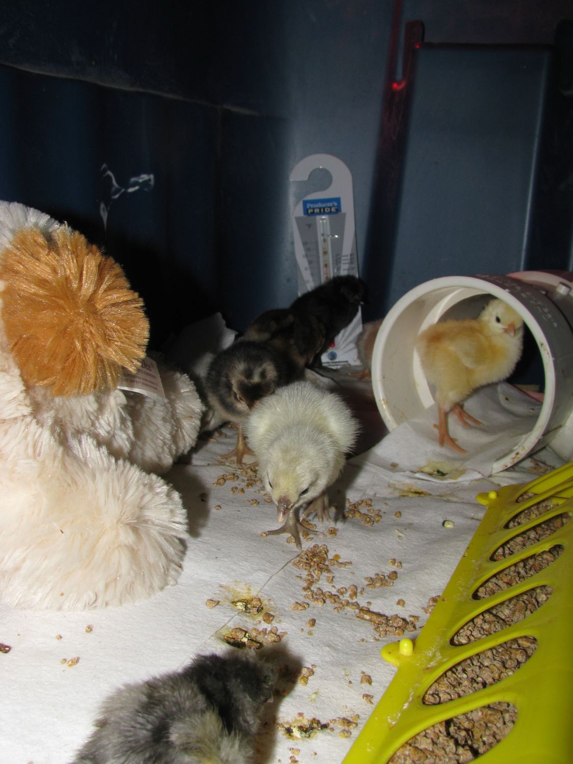 well the rest of my week olds 4 cream legbars and 2 silkies, still in the house under the heat, are all wheezing...I'm trying to act like a tough chicken farmer but I'm really just worried sick!! my outside birds all seem fine...I have an orpington I'm a little worried about, I noticed that she's sitting in her nest box all the time and her comb has some blue points on it...I think she's wanting to sit but I keep taking her eggs! so I put the RX on her comb gave her some banana, because she loves it, and put a baby water out there! I think she's dehydrated.