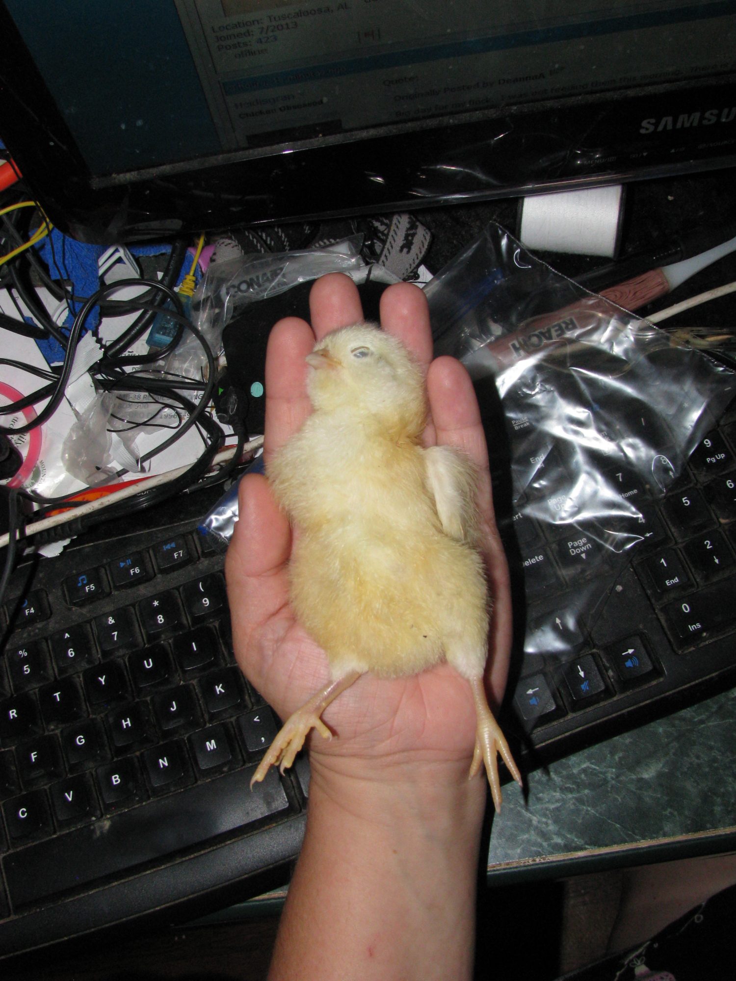 I am so devastatedMy biggest, healthiest, most beautiful Ameraucana/White Leghorn cross that hatched perfect with no help and was cheeping and playing an hour ago laid down and died when I left to take a nap with my 2 year old. She was almost twice the size of the others and had the puffiest cheeks and beard already. No bloody poop, no sign of injury, nothing. No clue and now I am afraid for the others. The only thing I can come up with is that earlier today they discovered there were pine shavings (the largest kind) under the paper towels and were digging them up and pecking away. I put down new paper towels and blocked their access to those corners - but maybe I was too late and she had eaten some giant piece and it killed her???? I checked her mouth to see if she appeared to have choked and saw nothing. No pasty butt, no bloody poop anywhere in the brooder, no sign that I could find of a broken neck or any kind of trauma. And she was so big there is no way someone else bullied her. Maybe a heart attack?? Here is my sweet baby