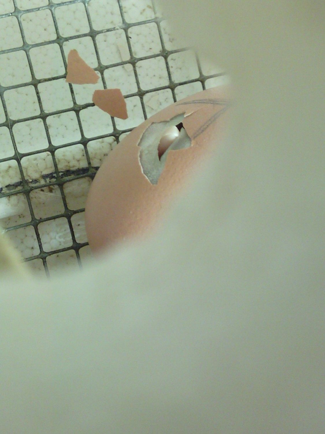 Holy cow!! I just did the craziest assist ever. I have one lonely olive egger in the hatcher (Day 21). It got unplugged and the temp read 89.2 so I took it out real quick, saw no movement and opened the top. Nothing but butt and leg. But it was still alive. I put water on the membrane and spotted an eye. It was head between thighs sort of sideways and upside down. I found a place with no major veining and made an artificial internal pip where I thought the beak might be hiding. All I saw was leg and wing. I peeled shell and wet the membrane with coconut oil and found the beak was pointing down between the thighs at THE major vein center. I went back to the top and cut between and around all the tiny veins to avoid them and opened the top enough that I could use tweezers to reach down and pull its beak up to the fresh air. Now its back in the hatcher to hopefully survive against all odds. Not even a cup of coffee yet, LOL!