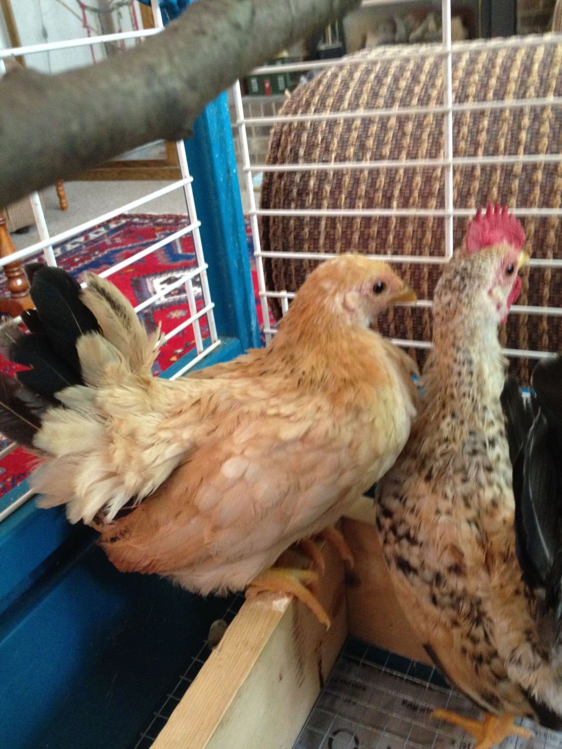 This bird is one of eleven that hatched from eggs bought off ebay. The pullet is much better than what the picture shows. From what I have read and looked at she has the appropriate build and stance. She is the only frizzle, the other ten show no trace of the trait. Right now she weighs a bit more than five ounces (ten to eleven weeks old); much smaller than the other seramas I have. I am wondering, should I decide to raise some chicks, what would be the best pairing for this bird?