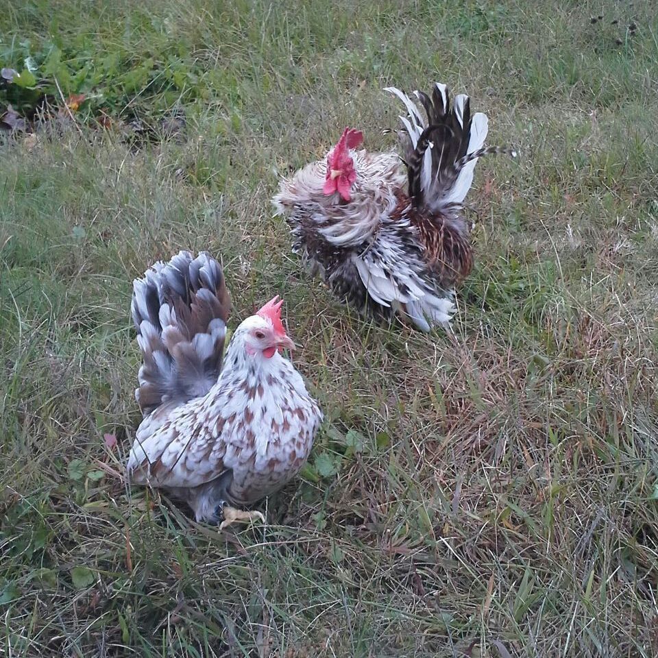 These are my 2 seramas, my rooster is not at all aggressive! In fact, he is super friendly, and likes to snuggle up on people's shoulders and get lots of attention!