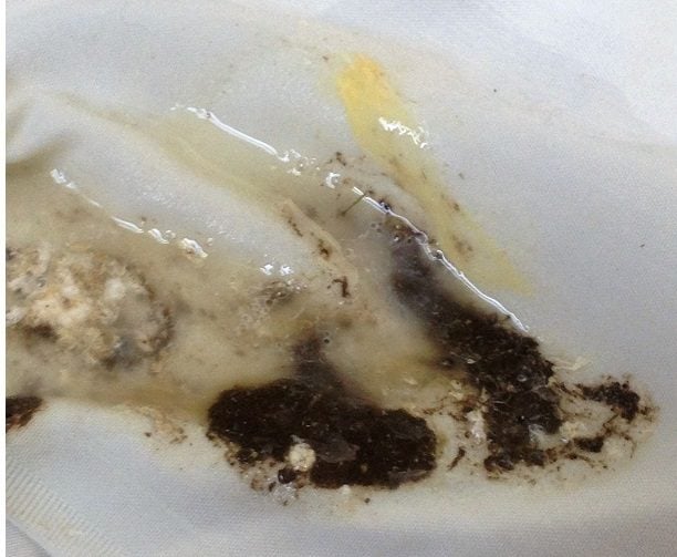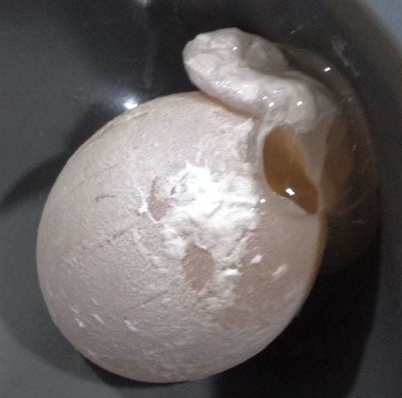 Background: She is 3 years old and This all started Oct 2015 When we noticed that she was panting a lot but never could put our finger on what was going on. Until Dec then it hit me that she needed another source of calcium. In the mean time she was becoming egg bound, prolapsing, and having a hard time then in Feb 2016 we finally got her diagnosed with metritis. We started her on Baytril and and Rimadyl. After 2 rounds she started to look better and act like herself. Then in May she started to lay again and they were for the most part okay eggs but then in Sept 2016 something happened. She stopped laying and for 2 weeks. Then she stopped eating and lost weight, feathers started falling out and i had blood drawn to check for cancer everything looked okay. Started on her meds again and in 3 days she pushed out several lash eggs and cysts. Which I got help identifying them here. Thanks to all the lovely and intelligent people here. Then for the next several months days were shorted so less light which played in our favor she would lay probably 2 a week sometimes they were calcified and others they weren't (soft shelled). Which brings us to Jan 2017 Our vet sugjested cystorelion shots to keep her from laying and give her body time to heal.Went back on Baytril And Rimadyl at the end of Jan through middle of Feb. Then switched to minocyclin to see if that might be stronger and help heal her egg gland. Really no change but beginning of March no meds and 2 weeks after cystorelin shot she started pushing again I knew it was another soft shelled egg and sure enough after 10 hours of pushing and 2 soaks she pushed out 2 soft shelled eggs the second busted inside her . Dr put her back on meds to get ahead of infection. And gave her another shot. But for some reason shots arent working aand she is pushing these things out like crazy Which brings me to yesterday..