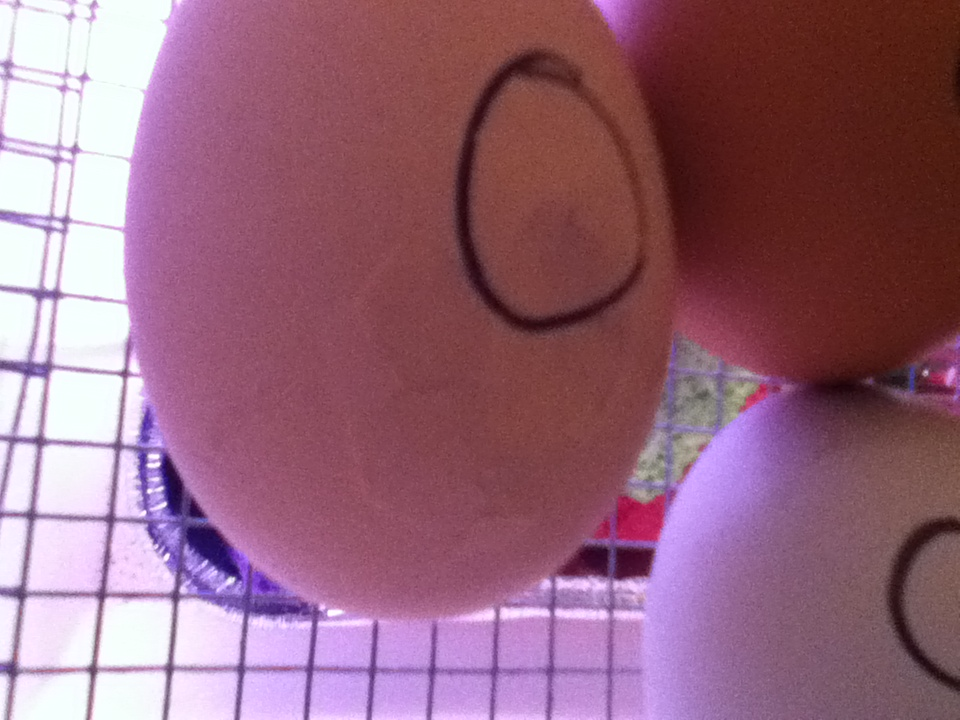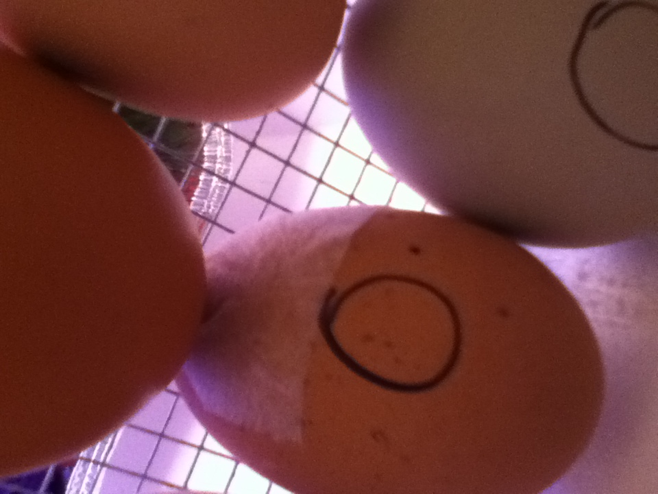 Ok, major egg emergency! I was turning the eggs about ten-ish minutes ago, and i wanted to candle an egg that i thought i had turned upside down, meaning that the air bubble was pointing down. Stupid me, i knocked the flashlight into the bator!One egg shattered(thankfully the dead one) but 2 others cracked!!