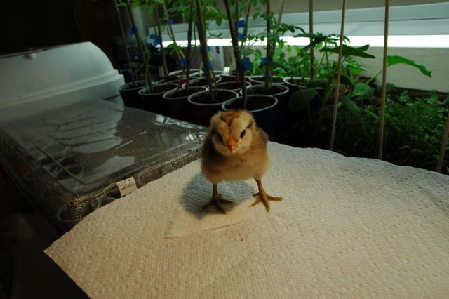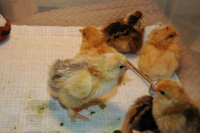 Some pics of our recent hatch. Our first hatch. She was so tired. A group of the first hatch. The incubator was getting too crowded. Six of the chicks that hatched in the incubator were added to the chicks our broody hen hatched. She is a 10 month old Buff Orpington and a great mama. She has 15 chicks and 1 turkey poult. After that she refused any more, so we have 16 chicks that are brooding without a mama hen. One of our EE chicks.