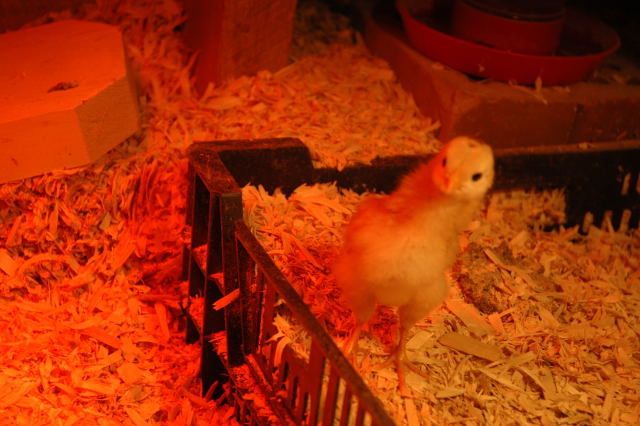 In the evening she comes and snuggles into a pocket, or our hood, or if she is cold, into our jackets and falls asleep. She is in a pen with 19 chicks, most who hatched March 30th-April 1st.