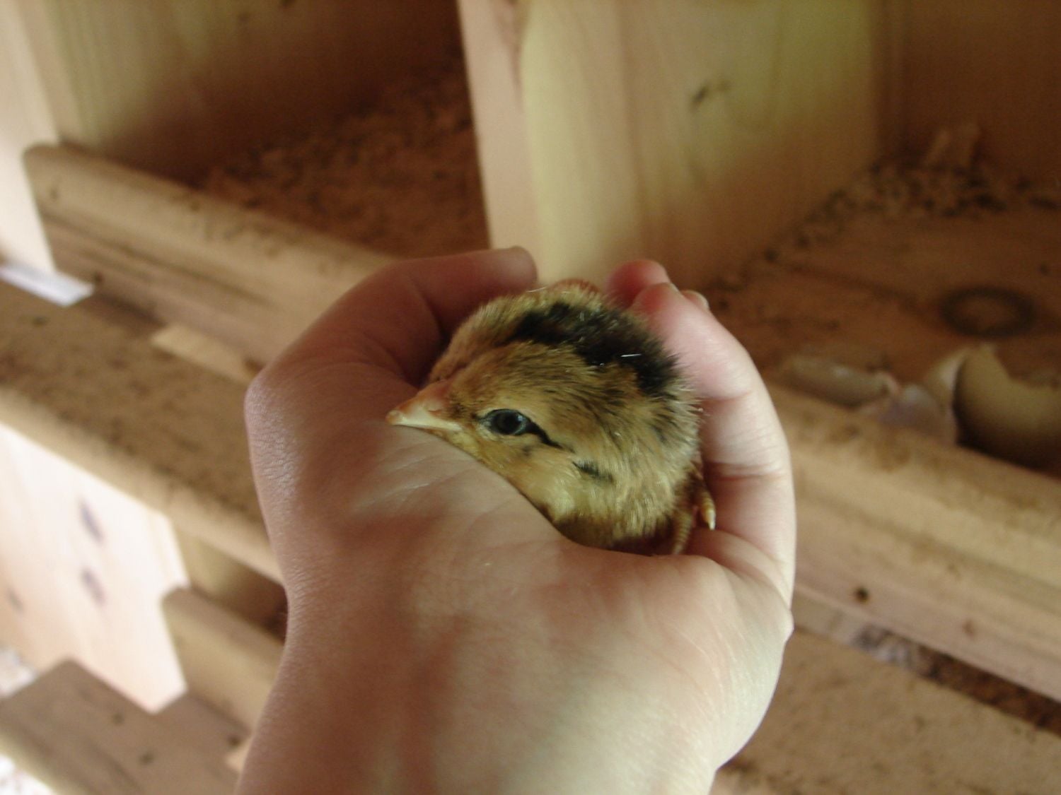 So I candle the eggs and no one is showing signs of growth yet (if any had they would have been set before the others). Go out to the coop and catch and then recatch the BA/EE and put her in the cochin's side of the coop where she gets into a fight with the white cochin. So I close the pop door leaving the black mottled and white cochin outside so she can have a chance to calm down and settle on to a nest.