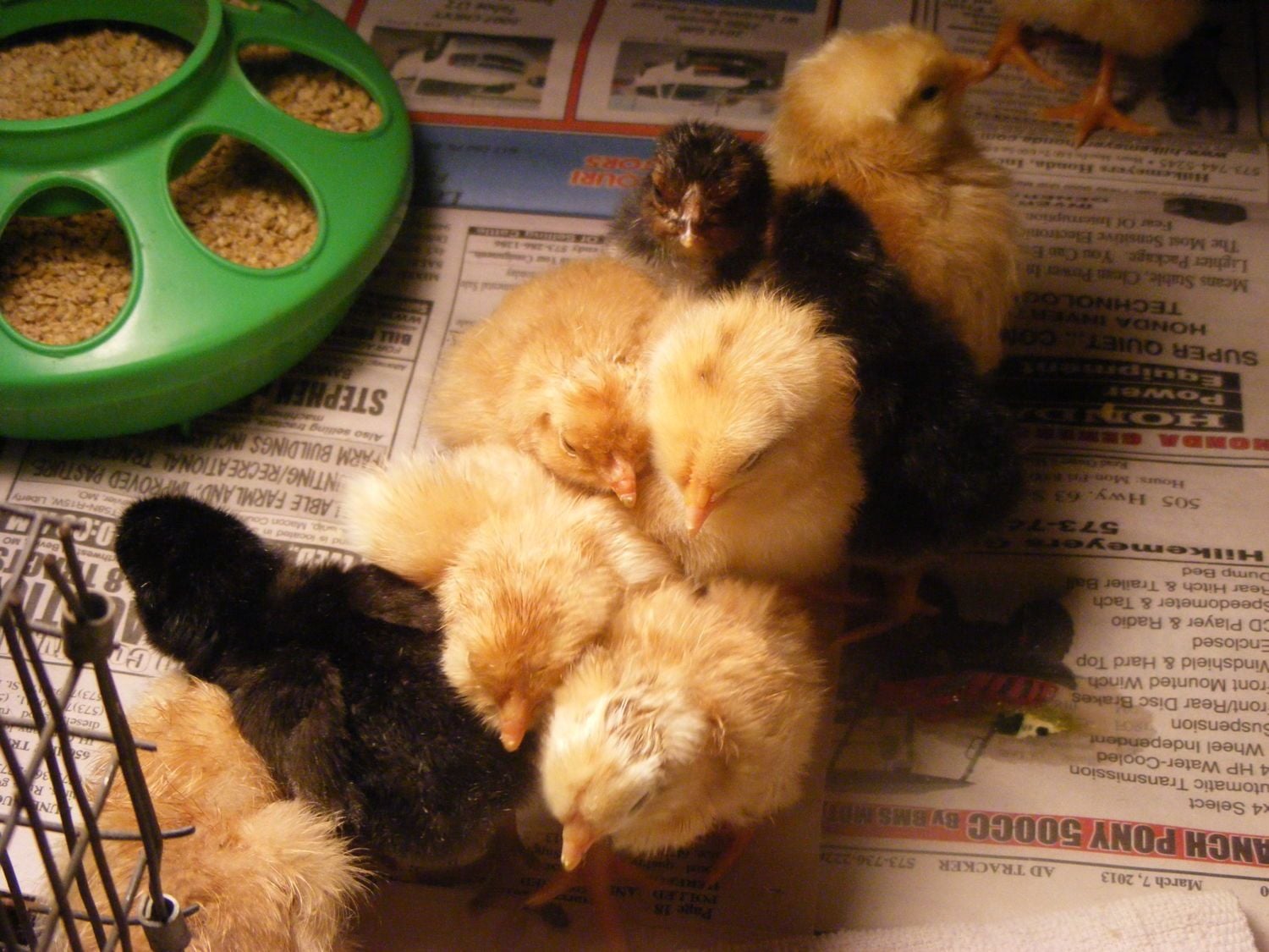 Congrats! They're adorable. Those darker "yellow" ones look more orangey to me. :) They're precious, and I'm super jealous that you got a 100% hatch. :)