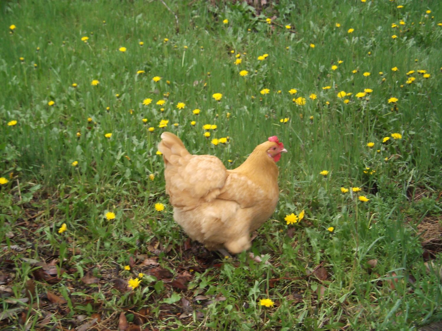She is actually an ivory/butter color. The man did have one lighter "Americana", so I'm thinking it must be her baby. I hope she is a hen so we can keep her.