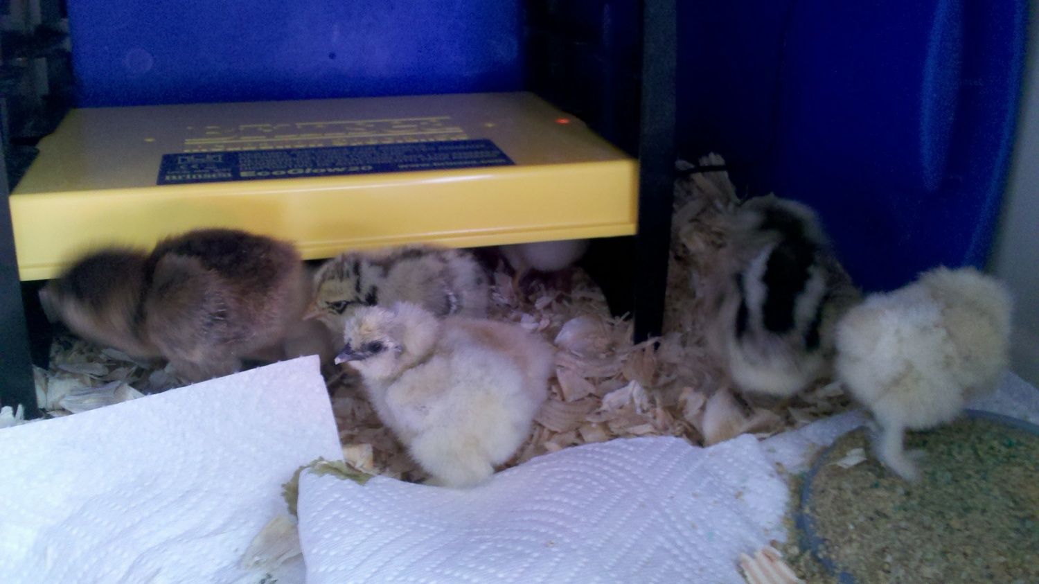 I just ripped a paper towel in half, twisted it up and poked it through the air hole! Whenever my humidity drops I just put a drop or two of water on it and it wicks down and increases the humidity by a few degrees instantly. The paper towel increases the surface area for the water and makes it easier to increase the humidity quickly. It's been holding it really well too! I'm sure I could have just closed the vent but I was afraid there wouldn't be enough air flow to the eggs. I think this would work just as well in a styrofoam incubator. These are the things you resort to when you are waiting for your eggs to hatch! I rigged that up yesterday and so far today I have gone to the gym, showered, played with my frizzles, cleaned their cage, exercised my dogs, cleaned my kitchen, made cookies and started knitting a chicken sweater! Hurry up chicks!!