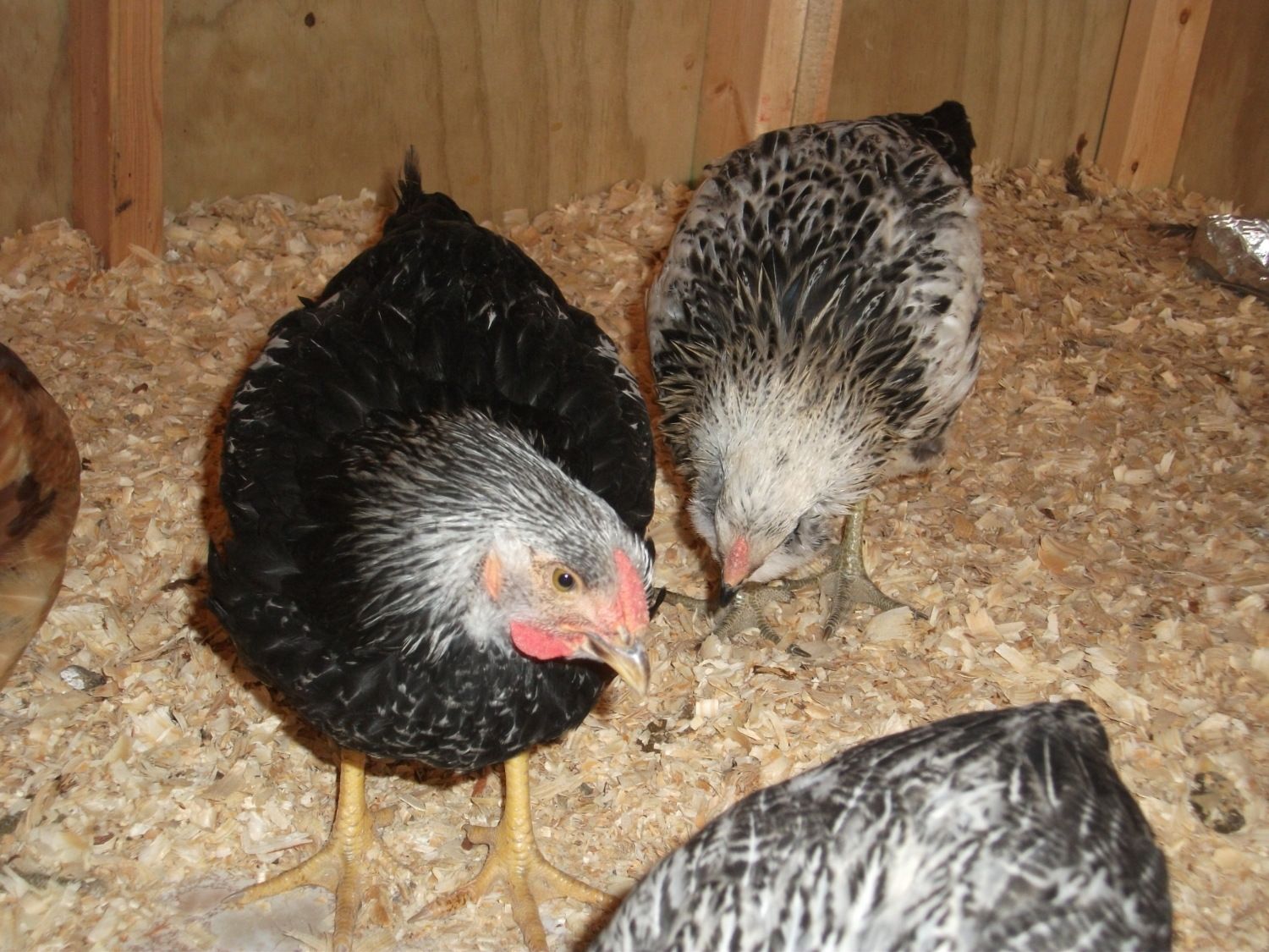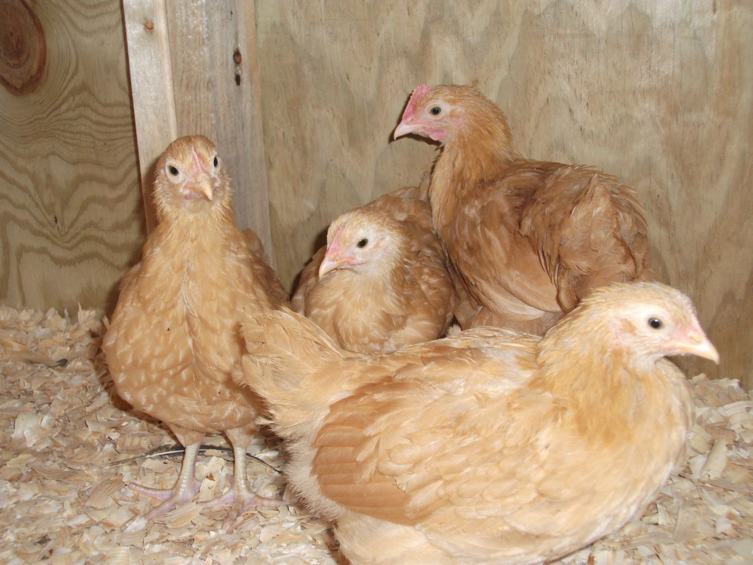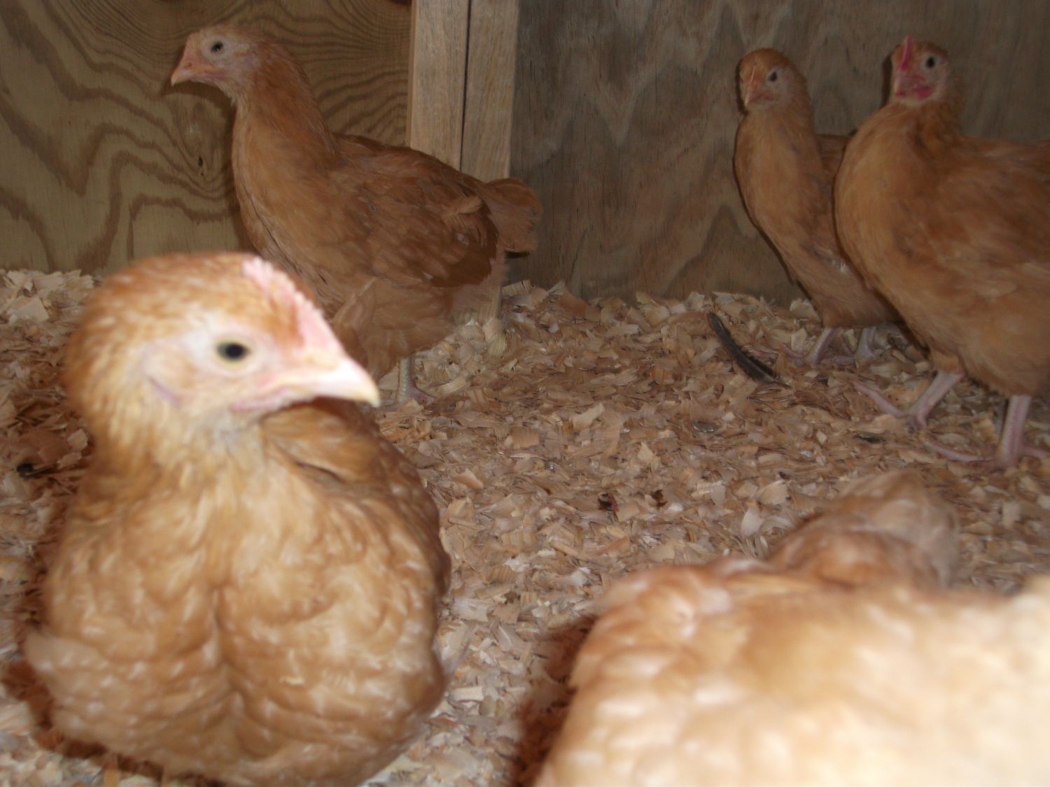 Here are a few more pics. The guy on the left in the back is definitely a cockerel, he is crowing. The SLW in the front I thought was a cockerel, but when I took all four of mine to a local guy he said this one was the only one that was a pullet. There are no saddle or hackle feathers although she is awfully red in the comb and waddles.