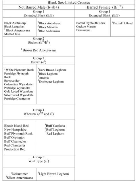 Silke Roo x White Leghorn Rooster will produce sexlinks, id+/Fm vs Id/Fm sexlinks, females will have black skin, males will have a clear yellow/white skin