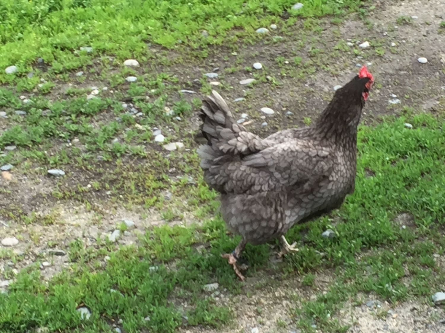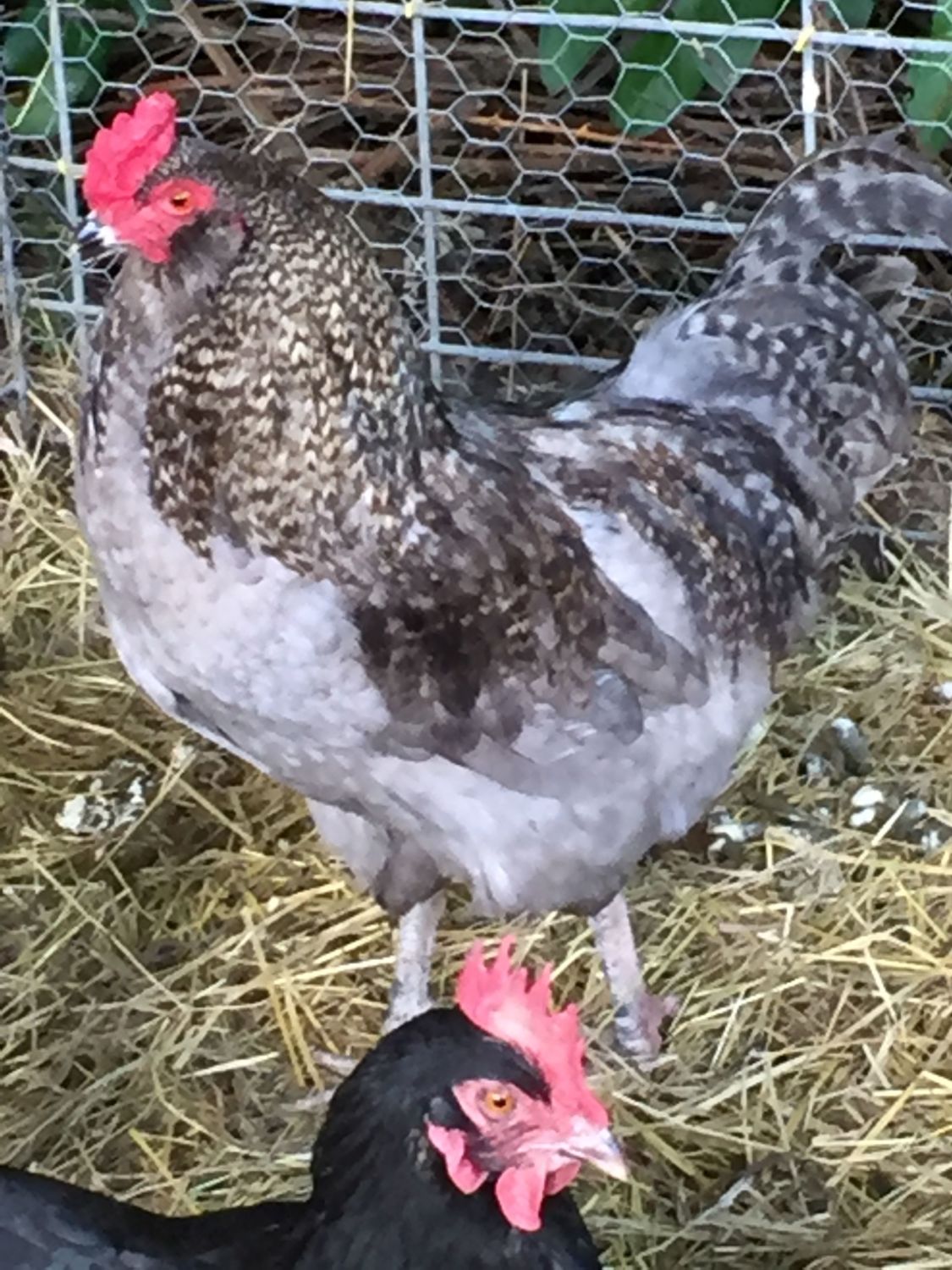 Pics of my rooster, and one of the hens. next generation will have blue barred hens, which I think will be very pretty. The barring is harder to see on the blue plumage, not as much contrast as with a black bird. But it gives a kind of soft brushed look that I like.
