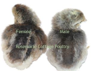 Cross this black AMericana, on the Dellie and get sexlinked chicks which are black with white spot for male and black with no spot for female.