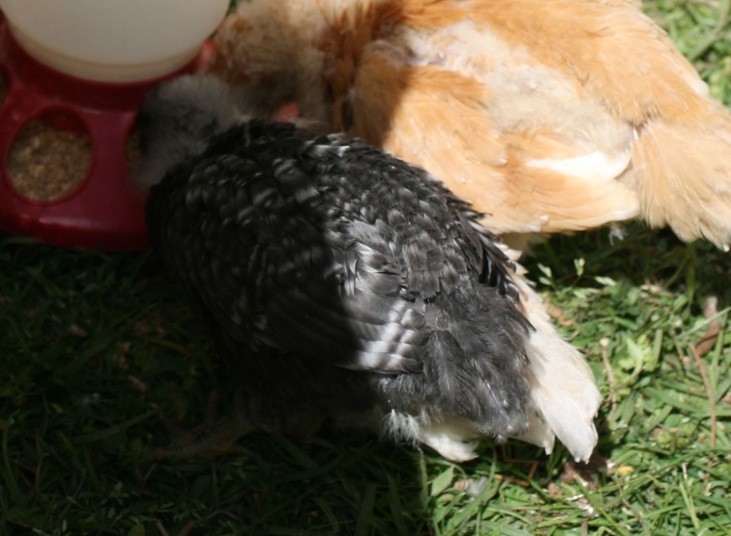DH wants to keep both BRs and one BO. I was going to keep 2 BOs and 1 BR. Either way, no roosters here which is why the bantam cochin has got to go, so I want to be as sure as I can at this point that they are both girls... or not.