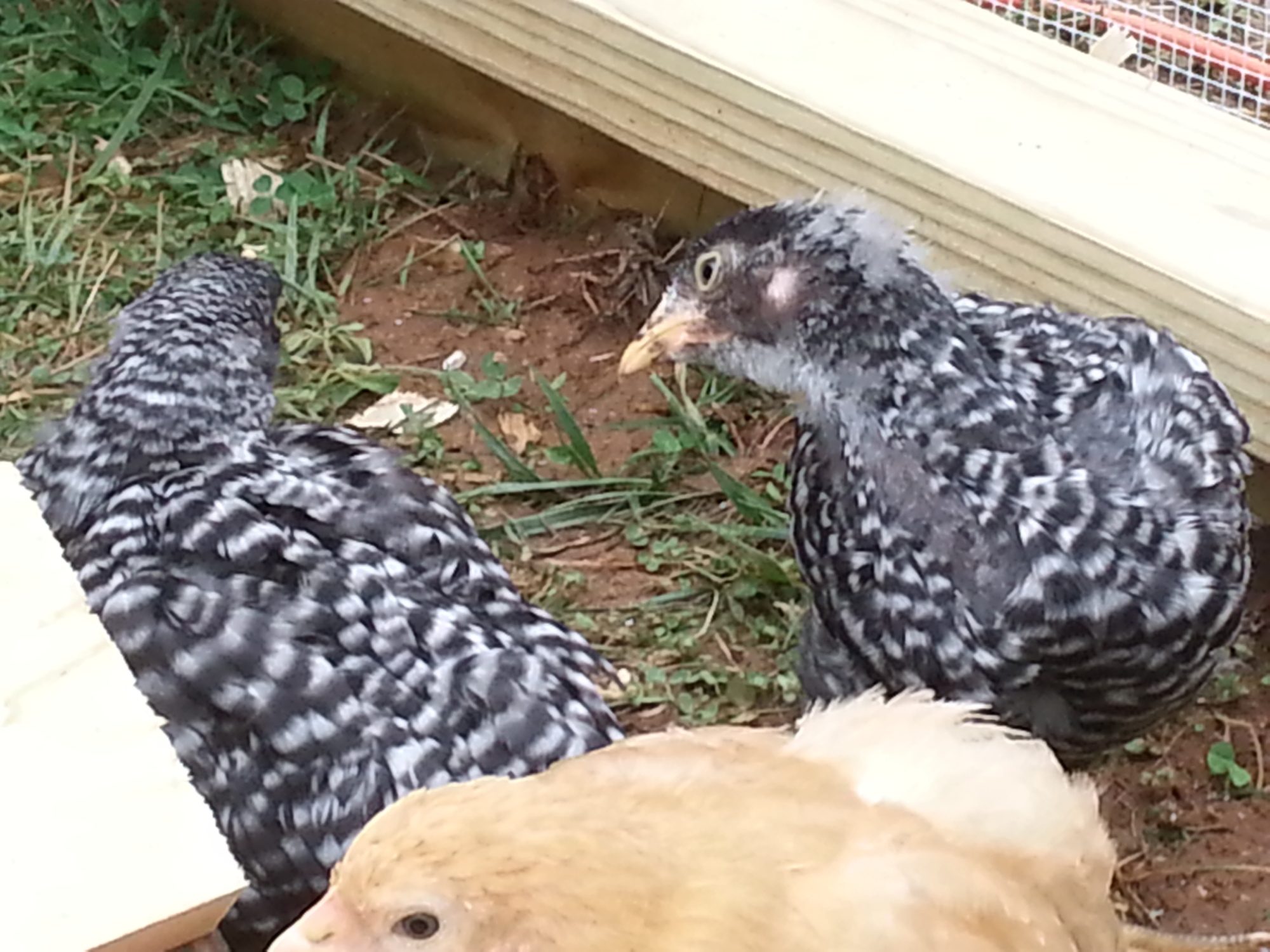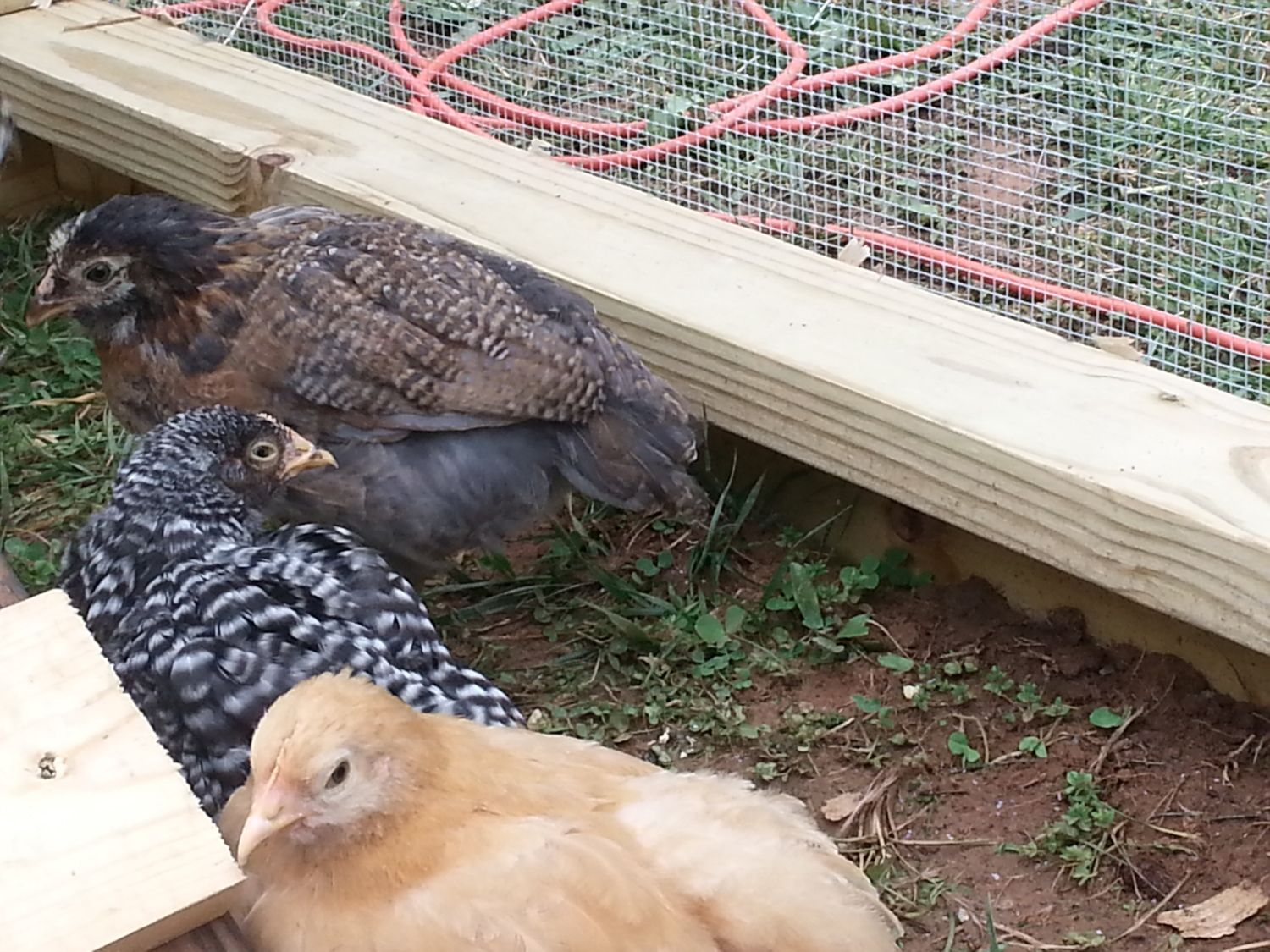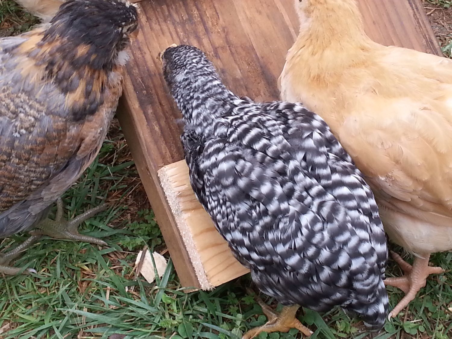 It took forever! Are your Rocks skittish? Because of my 3 breeds...they really are the most skittish and fearful of me. The hardest to photograph! The fly into the chicken coop walls and act very crazy. lol Here they are:chickmammy, do you have a closeup of each one you could post? It's difficult to keep them still for that long.![]()