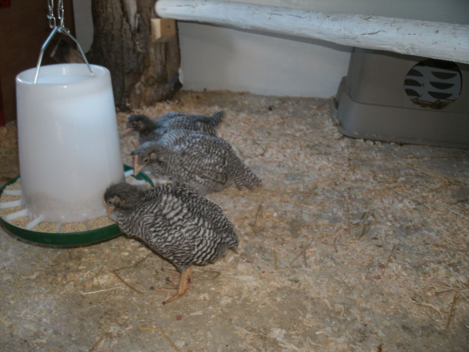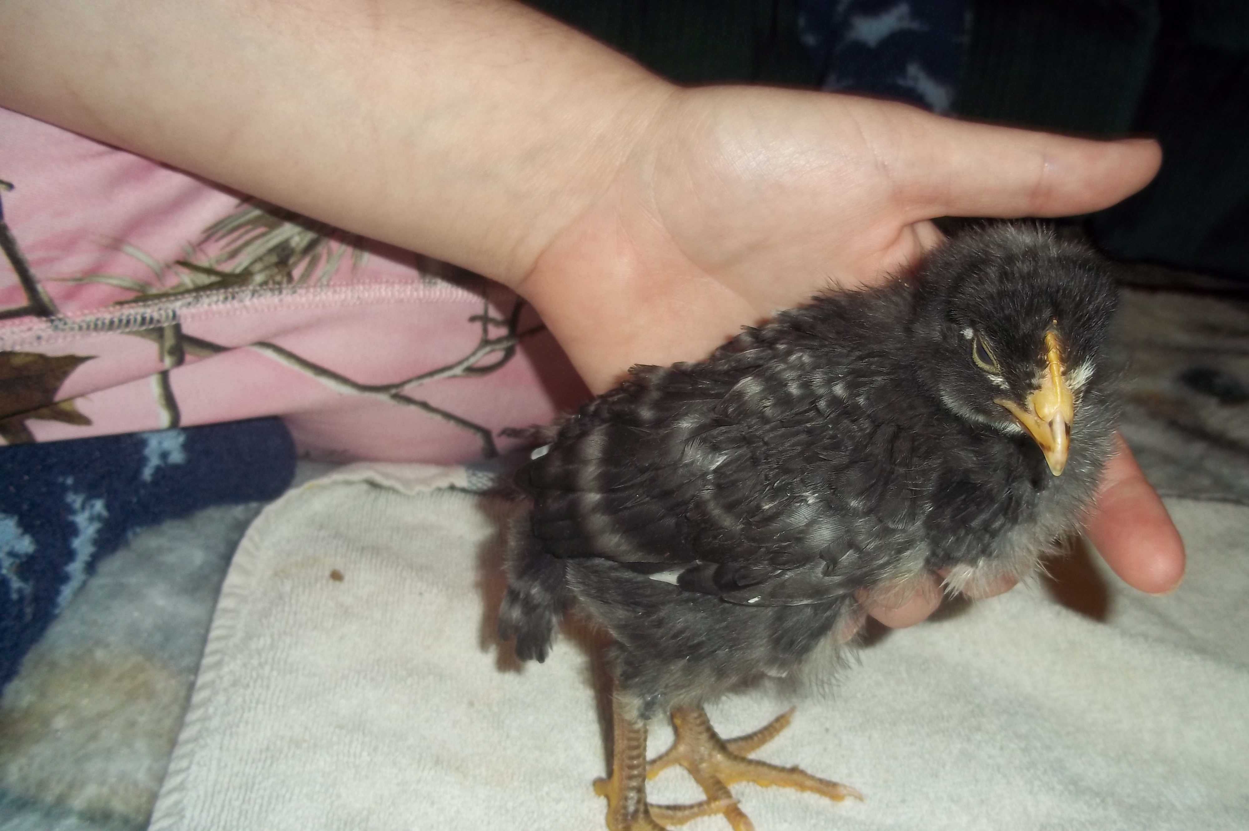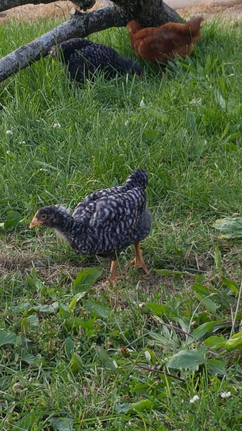 Can you do some closer photos? It would help. That first pic looks like one with bright white/contrasting barring (obvious cockerel) and 2 much darker, suggesting otherwise. But the next pic looks like 3 with bright contrast barring.Hello, I am new here and hoping that someone will please help me out. I'd recently ordered, and adopted 3 barred rock chickens. I could see that they were still quite young , all ready & boxed up for me to take home (very exciting!). Anyhow....they're home now, and I am posting a few photos by which I could appreciate the opinion of someone who is well versed in determining the age, and the sex of Barred Rocks. One little darlin' has a longer tail and is lighter in colour than the other two..... .![]()