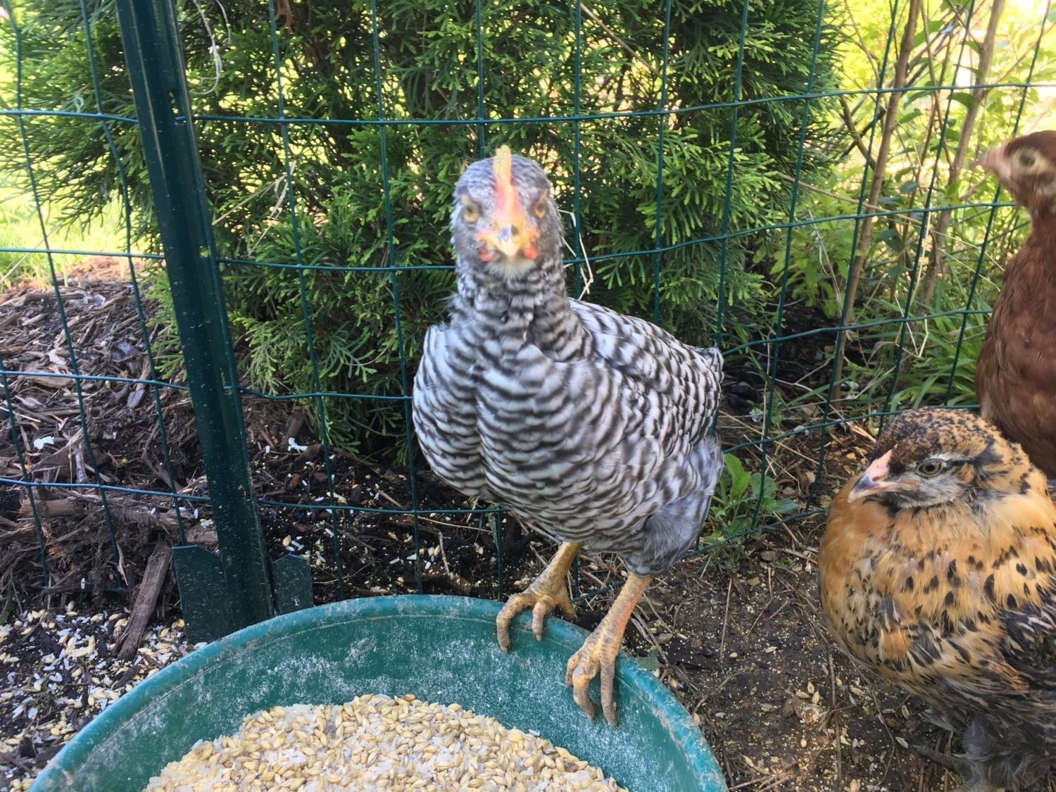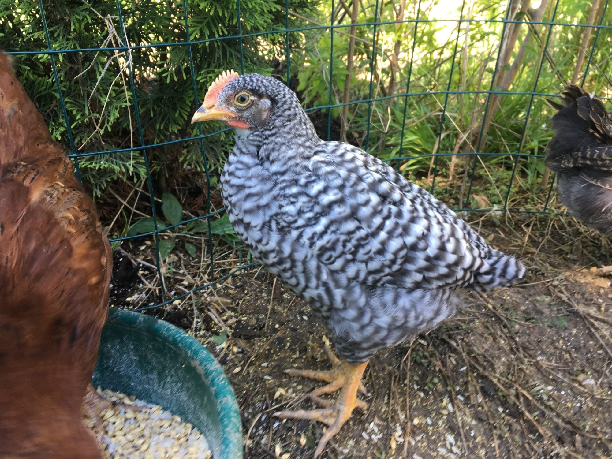 #1 looks like a cockerelI purchased two Plymouth Rock "pullets" atTSC two weeks ago but they look really different in their legs and in the way their feathers are coming in. One has way more. I would love help identifying them!