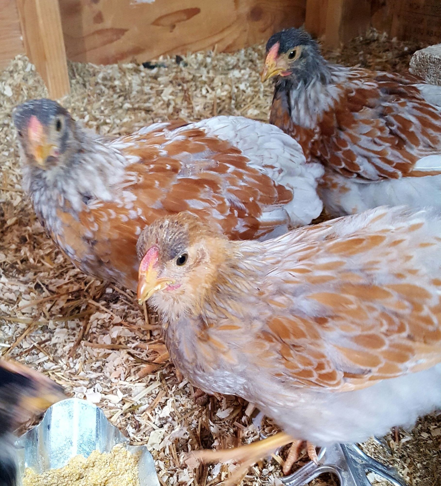 I have 3 blue laced red wyandottes that are about 6 weeks old. I am unfamiliar with rose-combed breeds and I am having a hard time making heads or tails out of what these guys are shaping out to be. Any thoughts? They are the three light-colored birds on the right side of the photos.