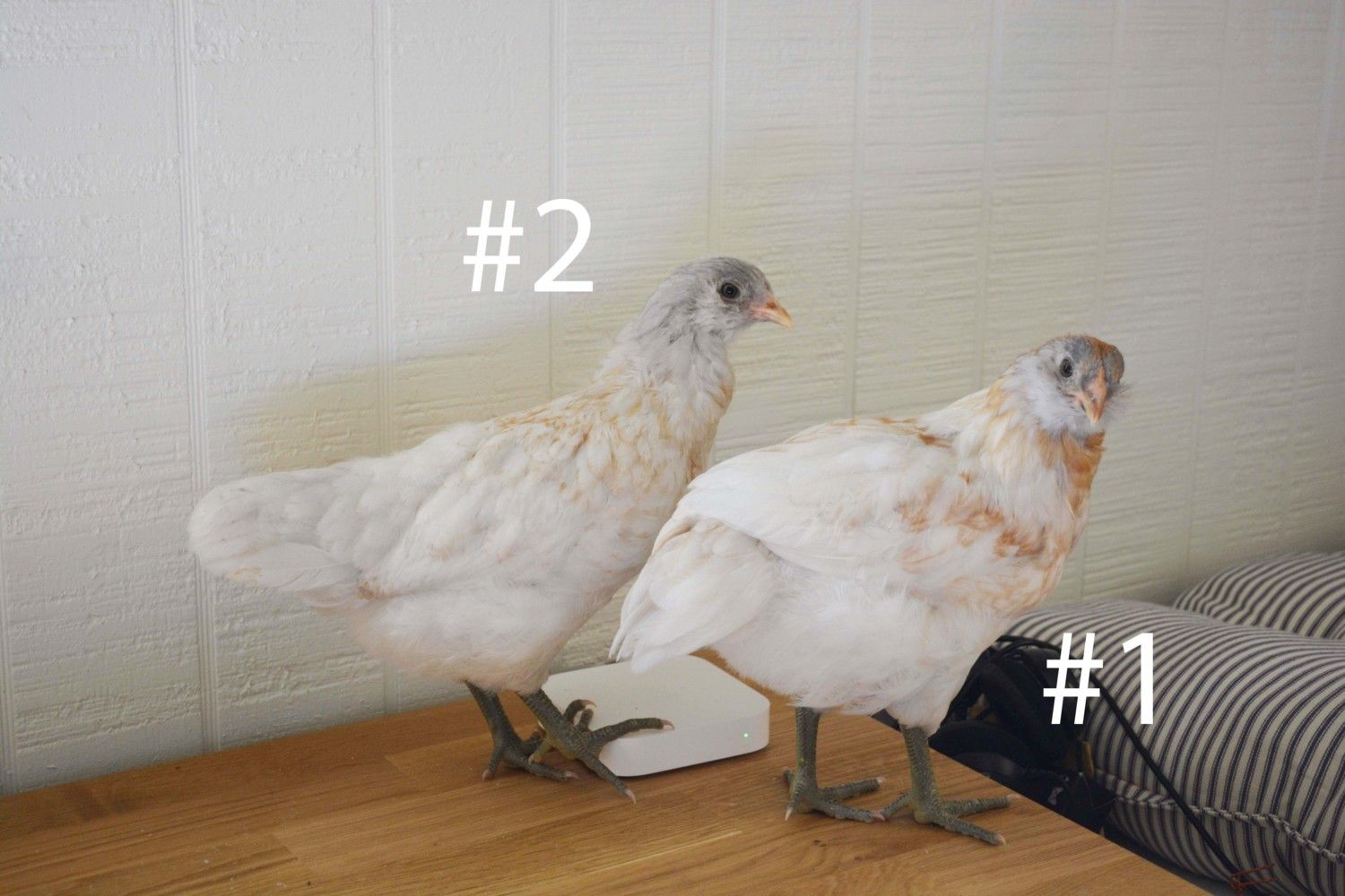 I think you have 2 pullets. The combs on both are still pale, and the red does not look red enough to be rooster red.Hello, I was hoping you all could help me out with these two. They're easter eggers hatchery sexed as pullets. But now that they're 6 weeks old, I'm starting to think that #1 is actually a cockerel!? I don't know much about this, but from reading posts on this forum I've become suspicious. #1 has a decidedly wider and more pronounced comb area with what appear to be three rows forming? Also #1 seems to be mush splashier in color, and the neck feathers especially don't seem very pullet-like to me. He/She is also growing his/her tail in differently than #2, with the outter feathers coming in, and the middle ones lagging behind, so I can't tell if they are curved or not. From the beginning I thought #2 might be a cockerel because she had a more upright stance, but now I'm all confused! Like I said I have next to no experience in this area. Would someone with a little more knowledge care to make a guess?